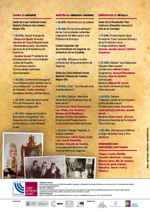Mi amiga Gabriela Grech, con la que compartí mi infancia en Larache, participará con una pequeña muestra de su proyecto Larache/Al-Araich, en la exposición Los hispanojudíos de Marruecos, que se inaugura el próximo lunes 15 de Noviembre en el ámbito de los encuentros sefardíes que tendrán lugar en Madrid, Segovia y Sevilla. La exposición permanecerá abierta aproximadamente durante un mes en la Casa Sefarad de Madrid.