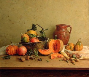 bodegón calabazas granadas