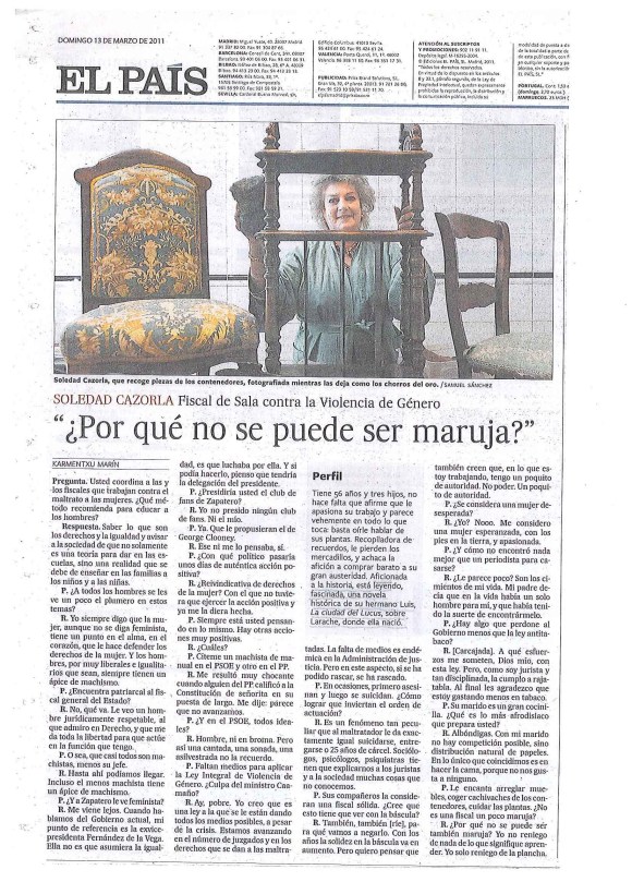 Recuerdo varias entrevistas realmente interesantes en las que Mª Soledad Cazorla ha expuesto con firmeza y claridad de ideas sus convicciones y sus principios, como una que le realizó Iñaki Gabilondo. El pasado domingo, 13 de marzo, el diario El País, publicó una nueva entrevista, y creo que en ella muestra su sencillez, su simpatía y tanto su profesionalidad como integridad intelectual, y supongo que transcribirlo más abajo es un buen colofón para este artículo dedicado a una larachense que merece la pena ser conocida y reconocida por todos, especialmente por sus paisanos de Larache.
