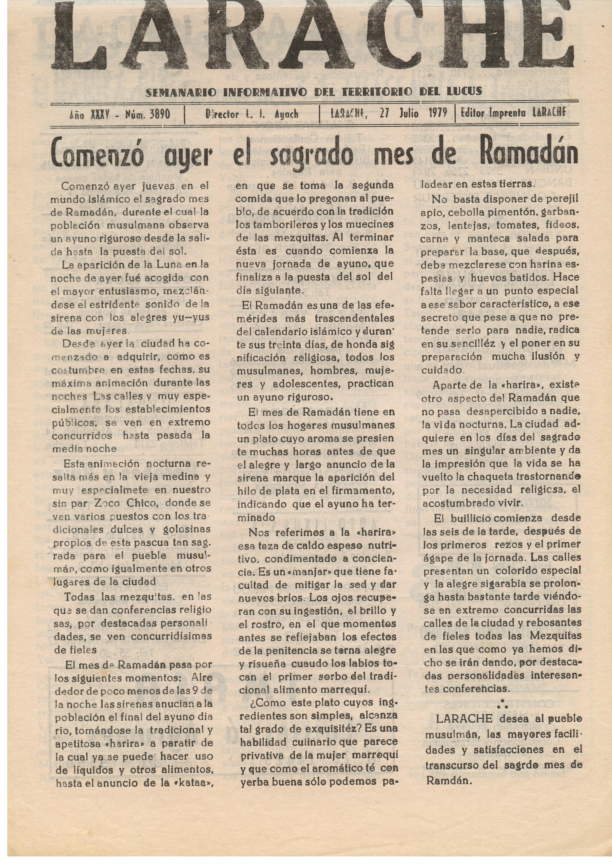 Como curiosidad, os adjunto el comentario que hacía el periódico LARACHE en julio de 1979 sobre la fiesta del Ramadán de aquel año: