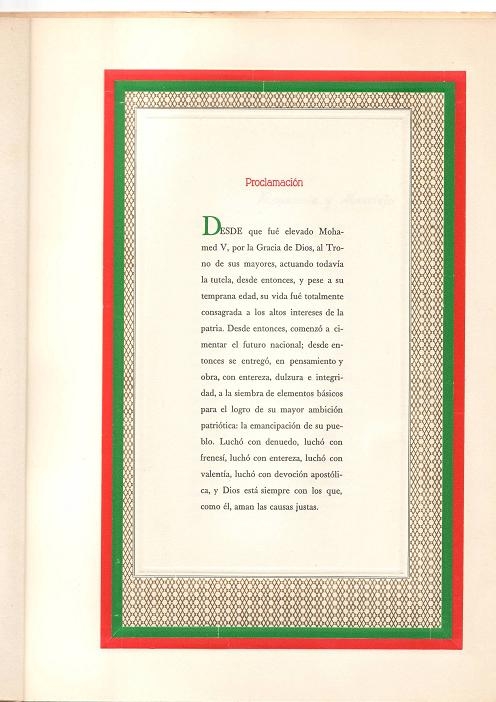 Hoy nos llama la atención por la grandilocuencia y el lenguaje empleado, muy propio de la época, con el que pretendía ensalzar y enaltecer la figura del monarca, Mohamed V, que, para los marroquíes, era y es sin duda un símbolo y una referencia. Hay que tener en cuenta, además, que el sentimiento nacional era muy fuerte en esos momentos, apenas cinco años después de que Marruecos hubiera logrado su independencia.