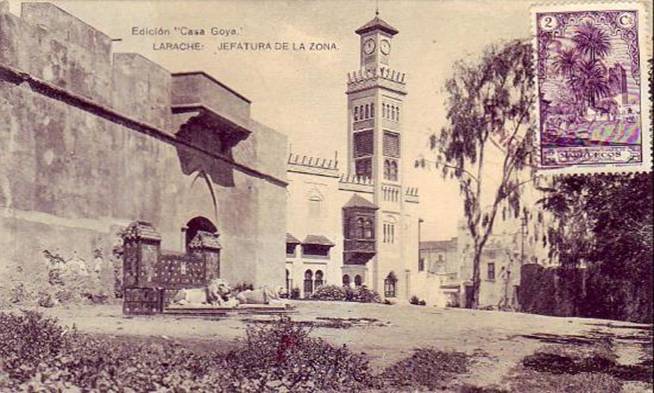 La esbelta atalaya laica que sirve de faro indicador de la existencia de la sede donde reside el poder civil “protector foráneo” −instalado tras ventanas árabes de medio punto y observando desde un balcón <iv> estilo “mucharabieh”, el transcurrir de la historia−, ve pasar abúlico las horas marcadas por su reloj, a la espera de que la voz del almuédano se expanda desde lo alto del minarete del templo musulmán a toda la medina para recordar a los fieles mahometanos las obligaciones que tienen contraídas −y que deben cumplir− respecto al poder religioso nativo.