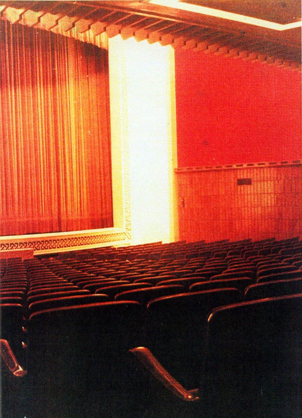 Cine Pompeya, calle Gran Vía 70, Madrid (1949), que utiliza de forma similar el espacio y la disposición del anfiteatro de butacas, articulando un elegante conjunto. Su arquitecto fue Juan Pan da Torre.