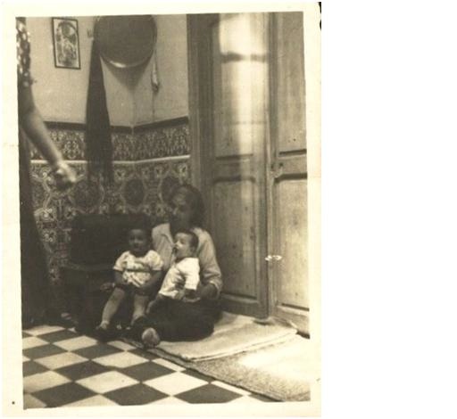 Está sentada en el suelo junto a la Singer y mira a la cámara de fotos con cierta desconfianza, mientras, nos tiene sentados a los dos hermanos en su halda. Es con seguridad el año 1948. Está sentada en su rincón del comedor, para mí el rincón de la memoria. En el comedor de Luna no hay nada más que una mesa y alguna silla, es un comedor desierto, inevitablemente austero, yo agregaría que pobre, muy pobre, donde únicamente destaca un tragaluz que aporta cierta claridad a la estancia. Luna no necesita silla alguna, le basta y le sobra con el suelo. En ese lugar suele coser, girando con su mano el volante de la máquina Singer, que alguno de sus hijos le ha regalado o que ella misma habrá comprado a “dita”. En esa máquina, ella misma se cose sus blusas y sus largas faldas, pues en aquel Larache, que yo recuerde, no había comercios donde vendieran confeccionadas aquel tipo de prendas tan “sui generis” que ella usaba. La Singer constituye por lo tanto un elemento de apoyo fundamental en su vida diaria, que además, llena de vida el ambiente del comedor, haciéndolo aparecer como un pequeño taller de costura.