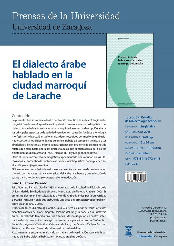 «EL DIALECTO ÁRABE HABLADO EN LA CIUDAD MARROQUÍ DE LARACHE», UN LIBRO DE JAIRO GUERRERO