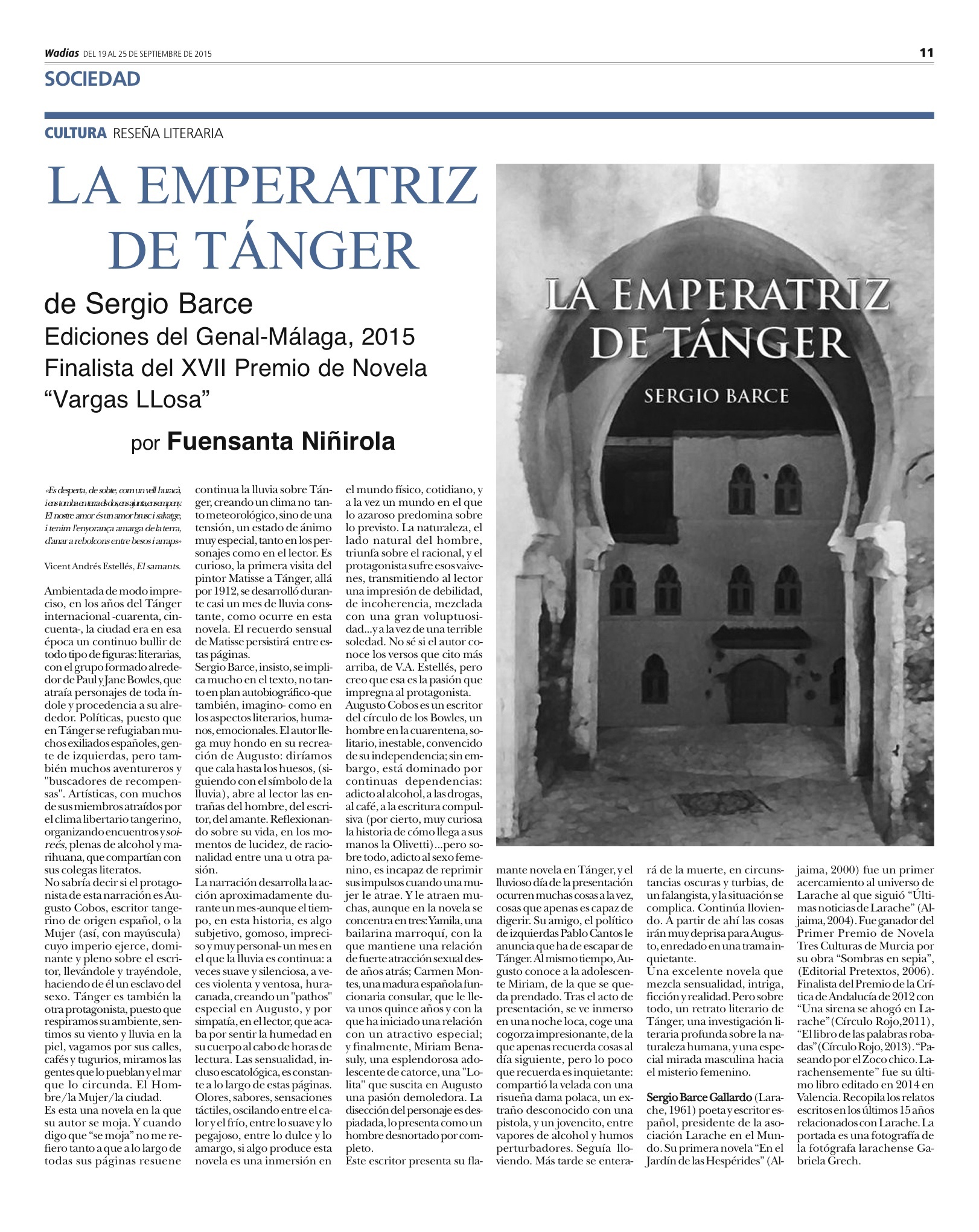 RESEÑA DE «LA EMPERATRIZ DE TÁNGER, DE SERGIO BARCE» POR LA ESCRITORA FUENSANTA NIÑIROLA EN LA REVISTA WADI-AS