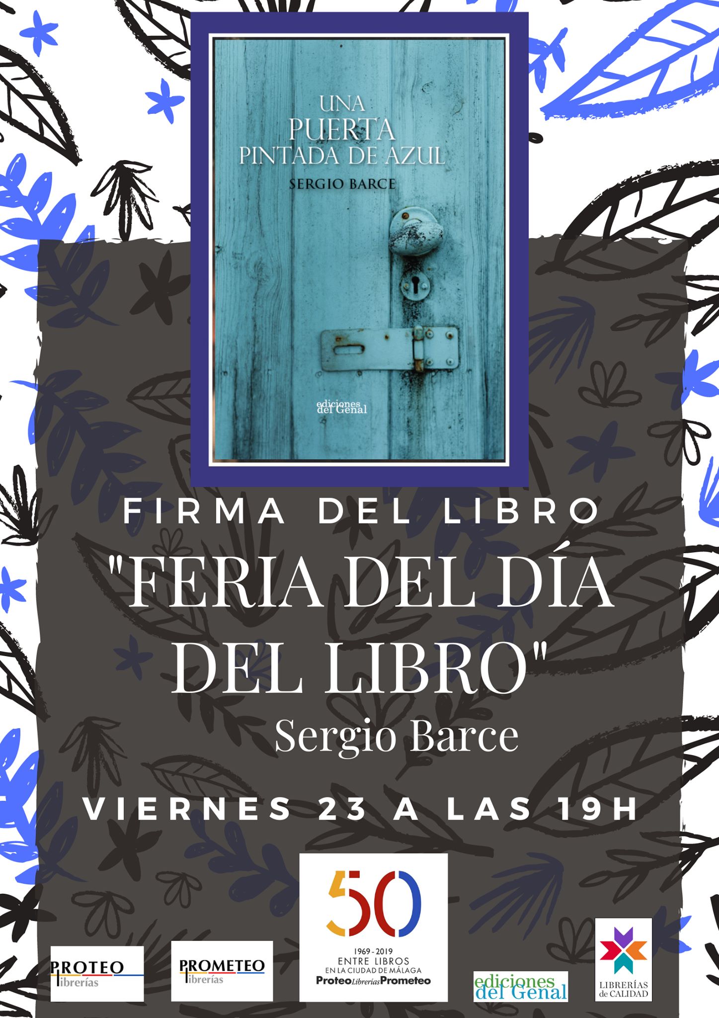 Este viernes 23 de abril, día del libro, estaré a partir de las 19.00 horas en la Librería Proteo de Málaga firmando ejemplares tanto de mi último libro de relatos «Una puerta pintada de azul», como de mis novelas. Os espero.