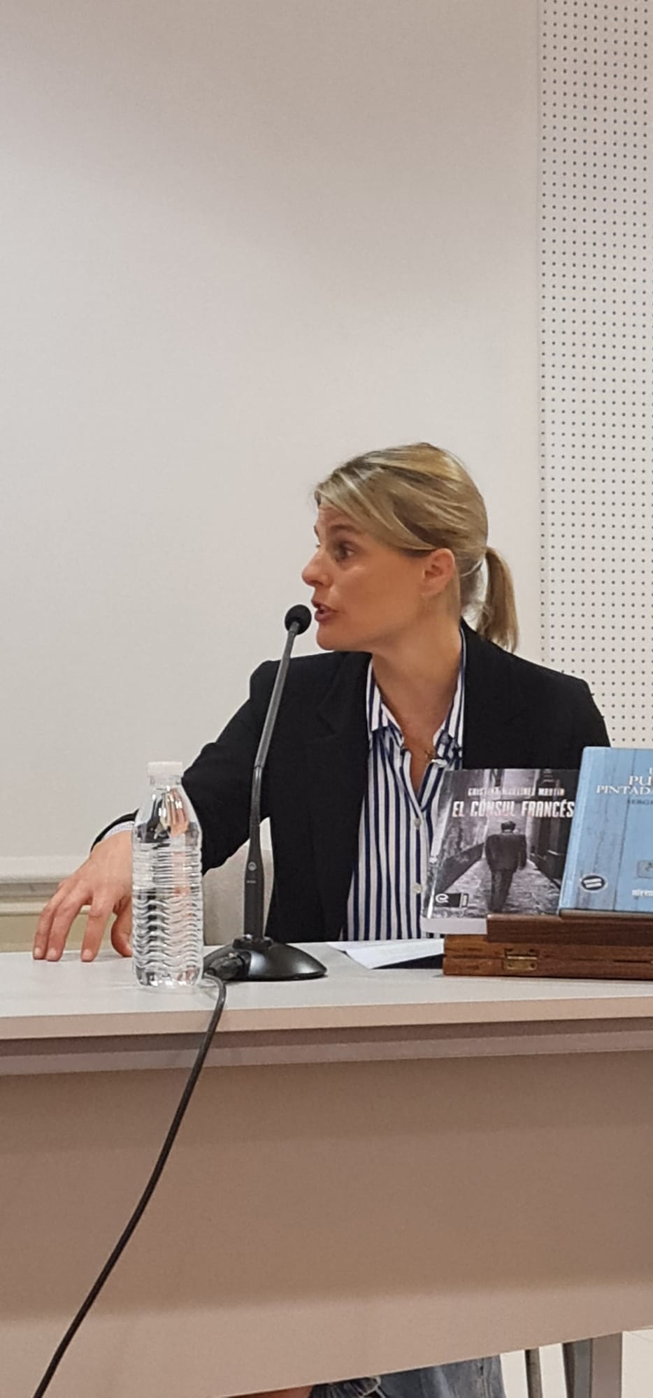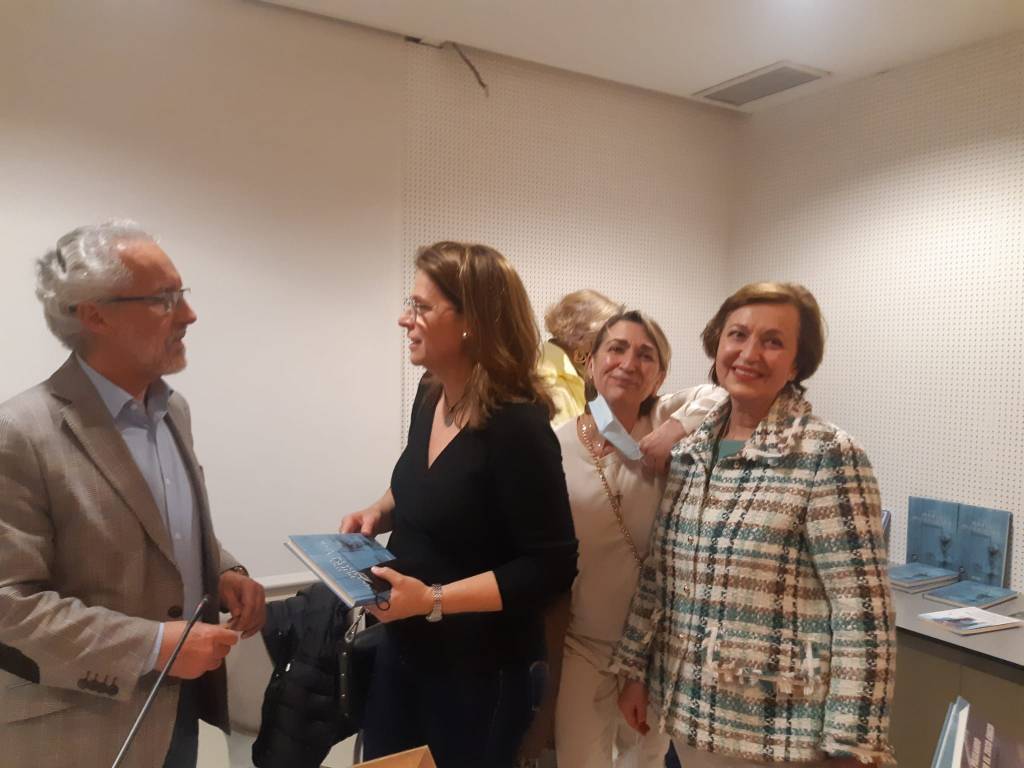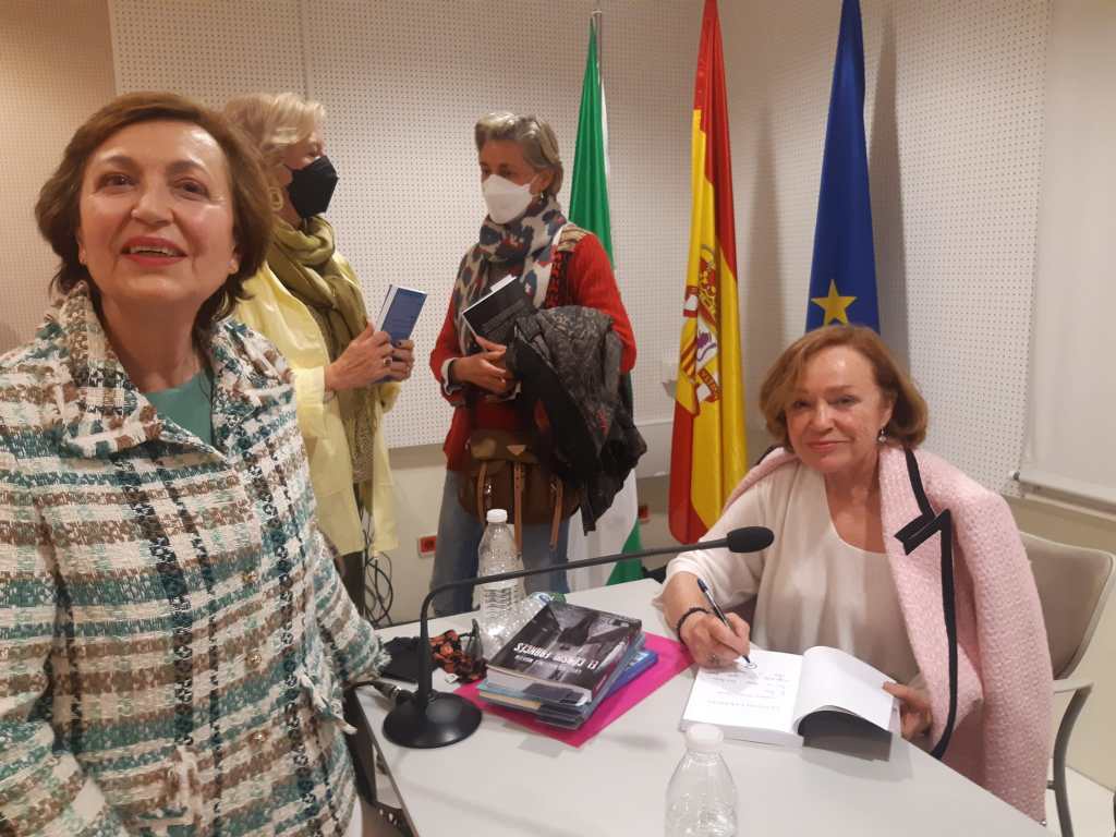 Rocío Rojas-Marcos hizo de cicerone, guiando al público asistente a través de las páginas de nuestros libros. Como siempre, Rocío estuvo perfecta, con ese apasionamiento que le pone a todo lo que hace, y tras presentarnos supo conducir el acto abriendo un interesante coloquio en el que también intervino el público, que poco a poco fue contagiándose de un ambiente emotivo, cercano y muy literario. Entre los asistentes, algunos larachenses, por supuesto, que nunca faltan a estas citas, como Ángela López Cobos, Mercedes Vega, Ana Mari y María del Mar Cabezo (que no sé por qué las perdí de vista y no puede saludarlas), Mª José García, Chuchi, José Mari López Cobos, Pili Navarro y, para mi sorpresa y emoción, Lola López Enamorado, con su hijo y con su madre Dolores, que me hizo reír recordando los buenos días en Larache.