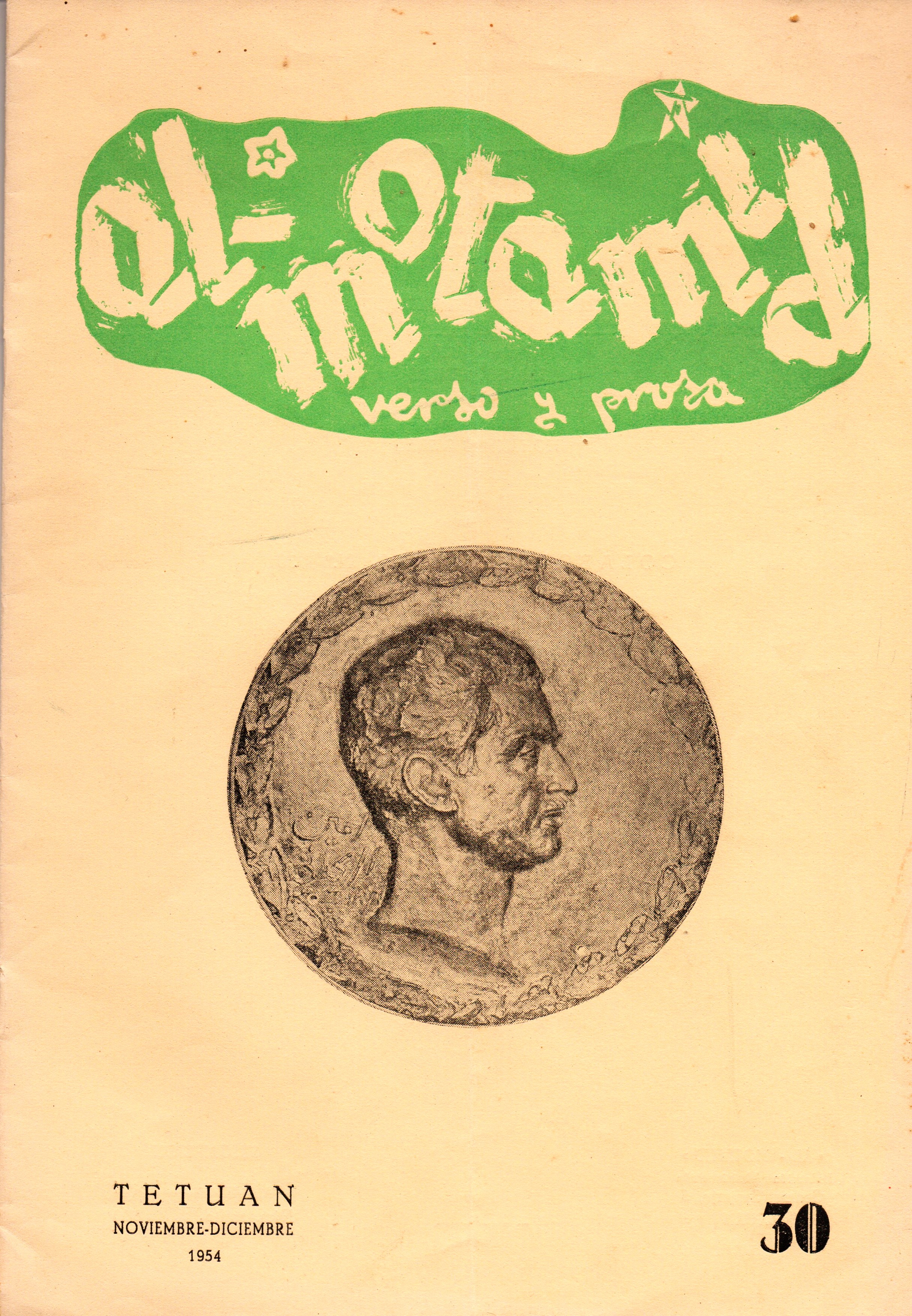 Aquí tenéis un nuevo ejemplar original de la revista AL-MOTAMID (VERSO Y PROSA) que guardo en mi biblioteca. Hasta ahora, he escaneado en este blog los números 2, 8, 11, 14, 17, 19, 21, 22 y 29. Hoy cuelgo el número 30, que se editó en Tetuán, entre noviembre y diciembre de 1954, siendo directora la poeta Trina Mercader; en la cubierta y contracubierta reproducción de medalla en homenaje al poeta Amin Raihani.