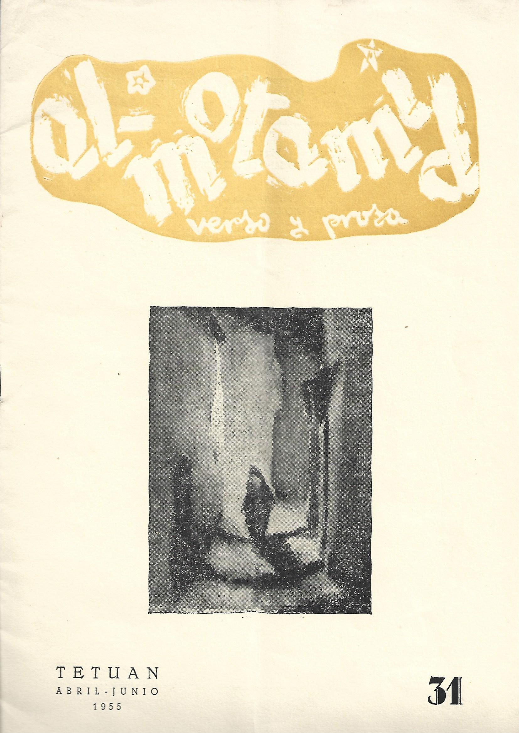 Nuevo ejemplar original de la revista AL-MOTAMID (VERSO Y PROSA) que guardo en mi biblioteca. Hasta ahora, he escaneado en este blog los números 2, 8, 11, 14, 17, 19, 21, 22, 29 y 30. Hoy cuelgo el número 31, que se editó en Tetuán, entre abril y junio de 1955, siendo directora la poeta Trina Mercader; en la cubierta y contracubierta un dibujo de Antonio Salas.