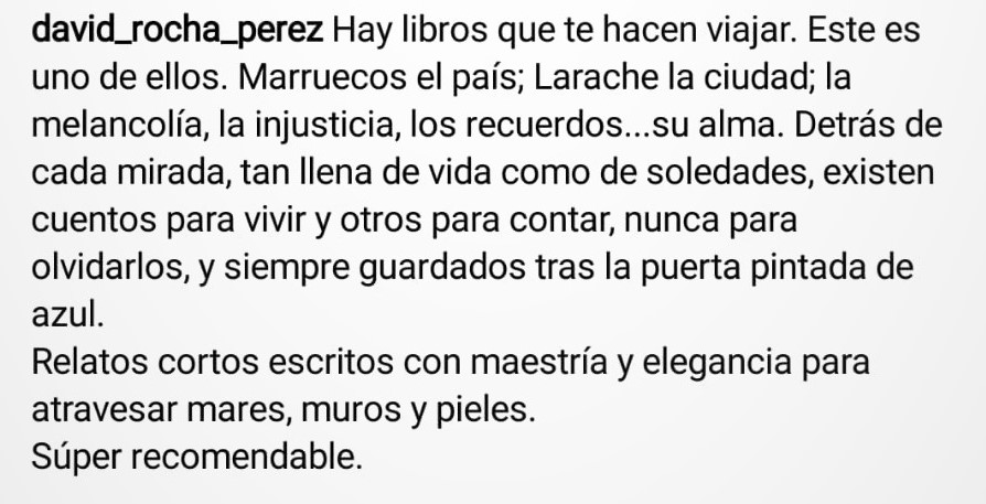 A primeros de septiembre, saldrá a la venta mi nuevo libro de relatos El mirador de los perezosos (Ediciones del Genal). Diez relatos ambientados en Tánger, en los que muchos amigos, sin saberlo, son algunos de los personajes que habitan en sus páginas. Con una hermosa cubierta que reproduce uno de los cuadros de la pintora Consuelo Hernández, junto a un poema de Isaak Begoña como apertura del libro, cuenta con una magnífica maquetación de Nuria Ogalla.
