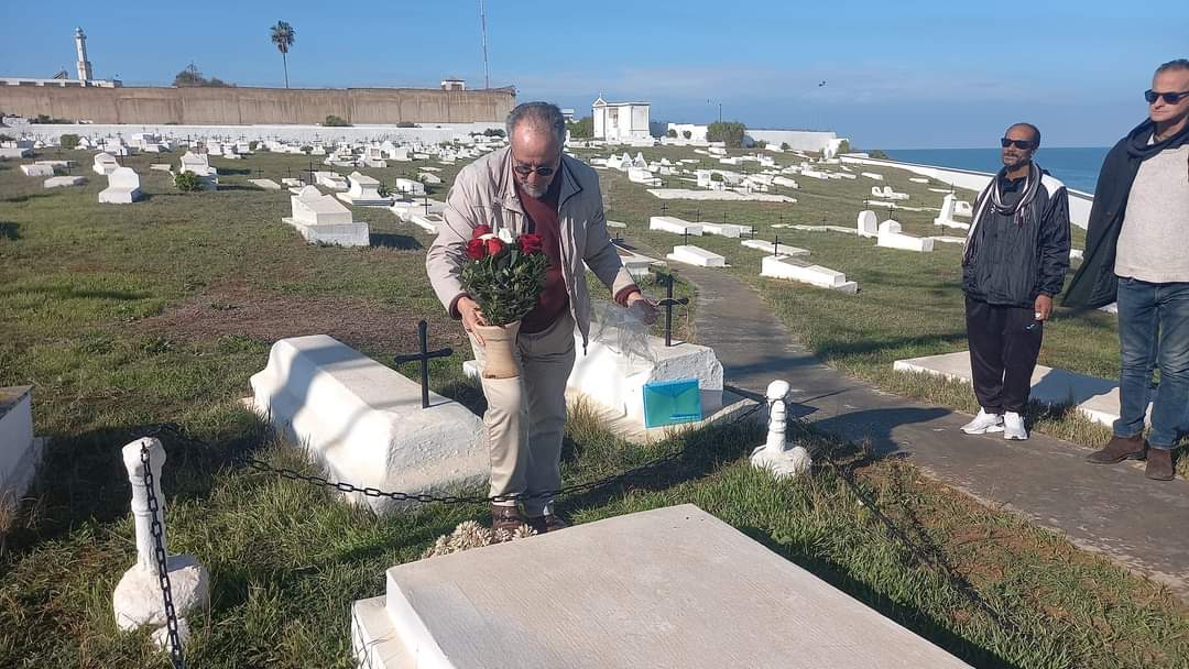 MOHAMED LAABI deposit´po un ramo de flores en la tumba de Juan Goytisolo