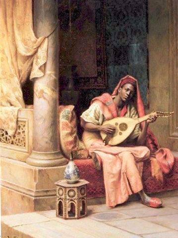 Mientras tanto, loa avatares políticos y sucesorios, la llegada de los almorávides primero y de los almohades después, teñían de temor a las palabras que iba escribiendo, como un presagio de oscurantismo, y por eso imaginé entonces que Julio invitaba al gran músico persa Ziryab para que tocara el laúd y ejecutara una de sus creaciones. Julio se abandonó en ese instante a un nuevo placer, el de la música más elitista de Al-Andalus, y embriagado por ella osó ordenarle al maestro que ejecutara algunas nubas sólo para sus oídos, como si fuera el nuevo sultán. Llegaron a tal grado de sintonía que ambos mantuvieron una larga discusión acerca de las diferencias que, con el tiempo, habían ido surgiendo en las formas musicales en Marruecos, en Túnez o en Oriente Próximo… En este punto, hube de dejarlos a solas, porque Julio trataba de absorber las enseñanzas del maestro y mi presencia le distraía.