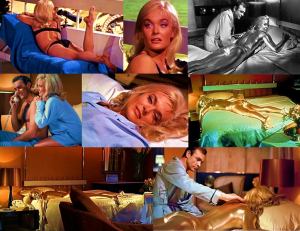 Ese cuerpo desnudo cubierto de púrpura es una escena imborrable; como el bikini (eso es un eufemismo, en realidad el atuendo era lo de menos y lo importante era el “cuerpo”) de Ursula Andress al salir del mar en “James Bond contra el Dr. No (Dr.No, 1962).