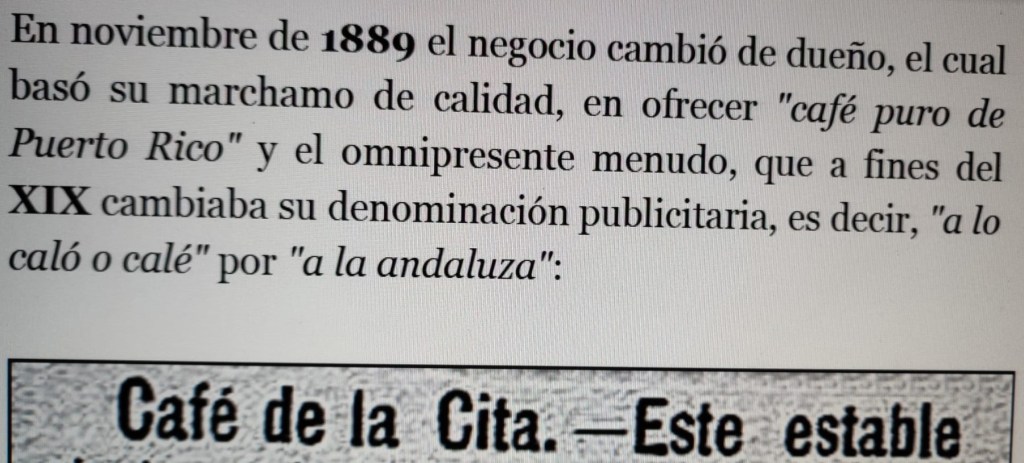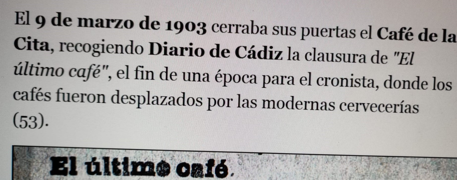 Y ahí está una parte de la historia de mis antepasados, rama paterna, de raíces gaditanas (la rama materna, que venían de Alicante y de Melilla, emigró mucho antes a Larache). Mi bisabuelo fue el arrendatario del famoso Café de la Cita (finales del siglo XIX y principios del XX) y aquí tenéis un poco de su historia: