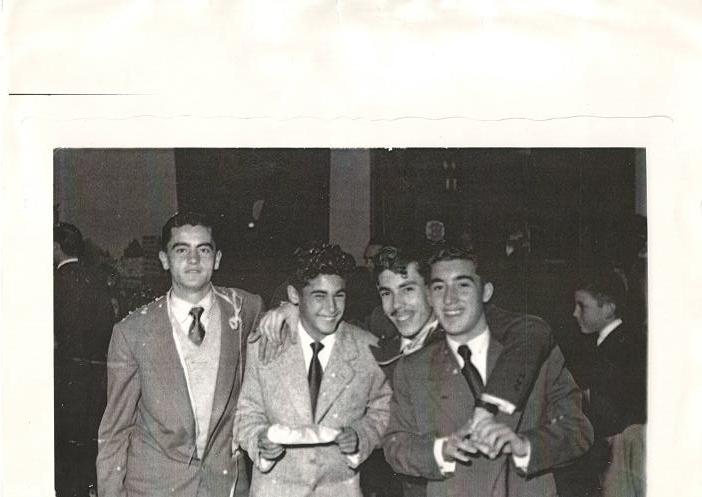 También el Casino era otro de esos lugares obligados, sobre todo en los momentos de las celebraciones. En esta fotografía están Paco Jurado, Carlos González Navas, Moya y mi padre. Recuerdos de otra época, con ese blanco y negro que rezuma de colores jamás olvidados. Cuando los años pasan, se produce una extraña necesidad de escarbar en las imágenes del pasado, no del nuestro, sino del pasado de los nuestros. Eso me ocurre con mis padres. Trato de bucear en sus imágenes, tal vez para comprenderlos mejor, para compartir más con ellos, probablemente como una artimaña para que los años no vuelen con tanta rapidez y no sé si echar a veces el ancla en imágenes de entonces sirve para todo esto, pero hace que ellos compartan conmigo los momentos en los que me explican cada detalle de sus recuerdos…