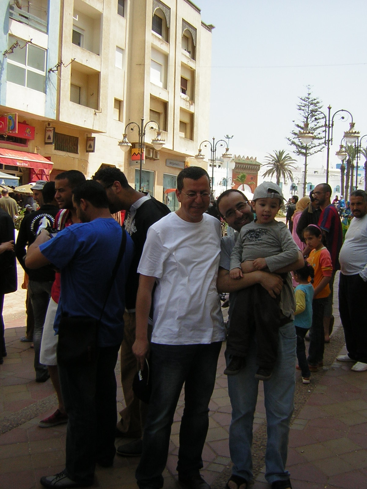 Se me ha ocurrido (espero que a Driss le parezca bien) que siendo como es la calle Chinguiti parte de la historia de Larache, abra su relato junto a una fotografía que me hizo llegar el profesor Fernando de Ágreda en la que se ve al poeta larachense Dris Diuri, otro nombre emblemático de la ciudad, paseando precisamente por esta avenida en compañía de sus hijos. Creo que es una hermosa estampa y una inmejorable manera de empezar a leer esta crónica.