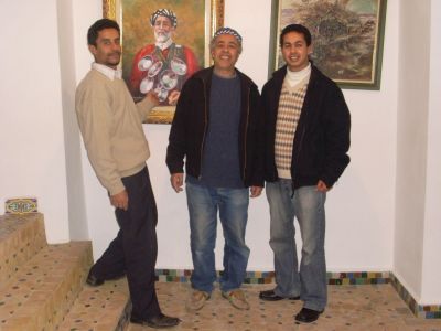En esta fotografía tres amigos en la galería Lafnar: Abdelfetah, un pintor al que aprecio mucho, Mohamed, que dirge la galería de arte, siempre de buen humor, y Aziz, que nos tiene acostumbrados a deleitarnos con sus videos e imágenes de Larache.