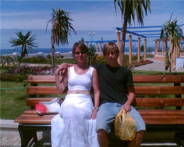Mientras que otros, más asiduos por razones familiares, mantienen el estrecho vínculo con Larache, pero también se retratan donde luego, con el paso del tiempo, se verán desde la distancia. Julia Sousa con su hijo Conri, rodeados del actual jardín del Balcón, explotando de luz y de color.