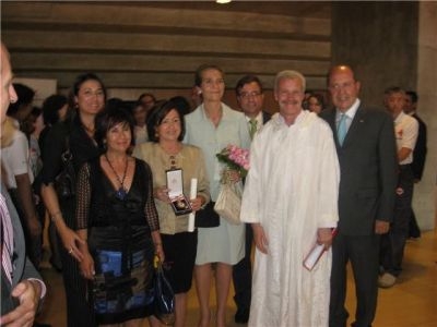 Y si hablamos de niños en Larache, se hace casi inevitable traer a colación el trabajo inmenso que la asociación Cherif Idrissi desarrolla con los chavales de familias más humildes, para enseñarles a tocar instrumentos musicales y artisticos. Sé que ya he hablado de ellos en alguna otra ocasión, pero en esta galería de larachenses es de justicia reconocer el esfuerzo de quien está al frente: Khalil Belaziz, hombre de ánimo inquebrantable, que en esta imagen recibe un galardón por su labor de manos de la Infanta Elena.