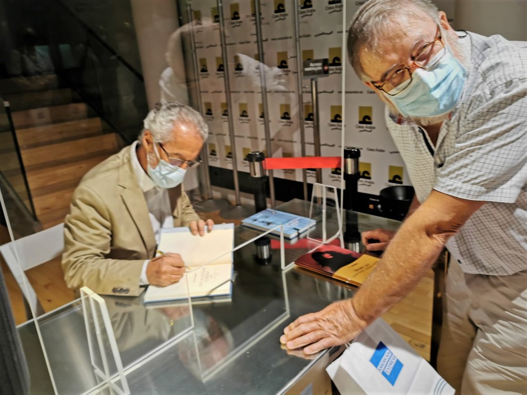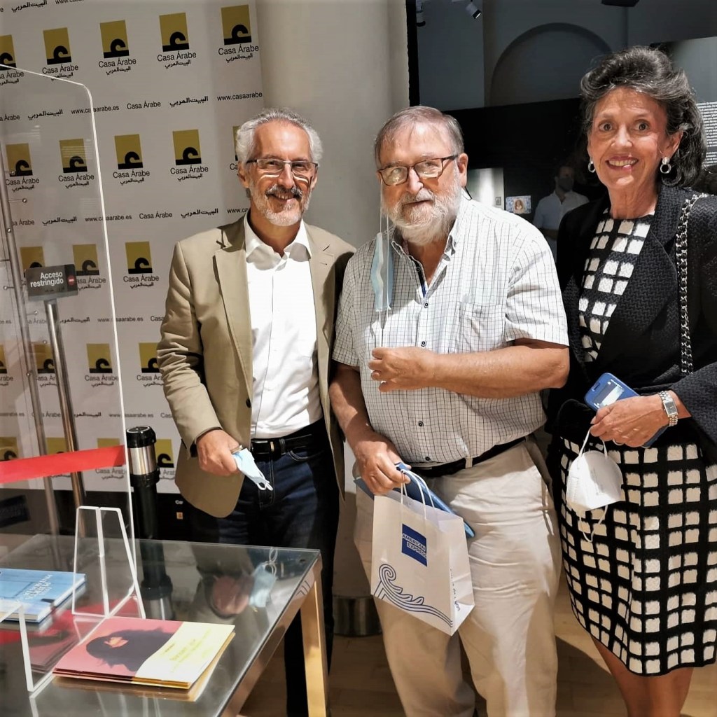 Además, hubo una excelente asistencia de público, teniendo en cuenta los problemas que la pandemia nos ha creado, y que hace recelar a algunas personas antes de decidirse a acudir a un evento de este tipo, como así me indicaron algunos amigos. Aun así, aunque no conozco a todos los que se acercaron, sí puedo hacer constar que me arroparon muchos amigos y lectores, y trataré de nombrarlos a todos (que me perdone quien no se vea transcrito): el escritor Luis Salvago, con quien mantuve el sábado pasado una charla de lo más instructiva (literariamente hablando), su mujer María José, los siempre fieles Charo Sánchez y César Martínez Herrada, que venían acompañados por los guionistas Pedro García Ríos y Rodrigo Martín, que hicieron de fotógrafos improvisados, reflejo de su generosidad; el poeta y “caminante” (él sabe por qué lo digo) tanyaui Farid Othman-Bentria Ramos junto al hombre que sabe vivir: Alberto Gómez Font, recién llegado de Tánger; y Consuelo Hernández, que me dio la bonita sorpresa de su presencia pese a que está tan ocupada en la preparación de su nueva exposición de pintura en la misma ciudad de Tánger; mi admirada Malika Mbarek, sonriente siempre, y su amiga Lucy; Paco León Borrego, que es de Alhucemas y sigue enamorado de Marruecos, como casi todos los asistentes; por supuesto, mis hermanos larachenses, que no fallan nunca: Angie Ramírez, Gabriela Grech, José Miguel Feria, Pilar Vicente Ascaso, Chiqui Pulido o José Manuel Galindo, que me hacen sentir tan bien; e inesperados encuentros como los del escritor, también tanyaui, Leopoldo Ceballos, del arabista Gonzalo Fernández Parrilla, al que por fin conozco en persona, del profesor Mahan Ellison, y la compañía de mis escuderos: Berry y mi hijo Pablo, el único director capaz de hacer que la adaptación cinematográfica sea mejor que el original literario (Alberto Mrteh dixit).