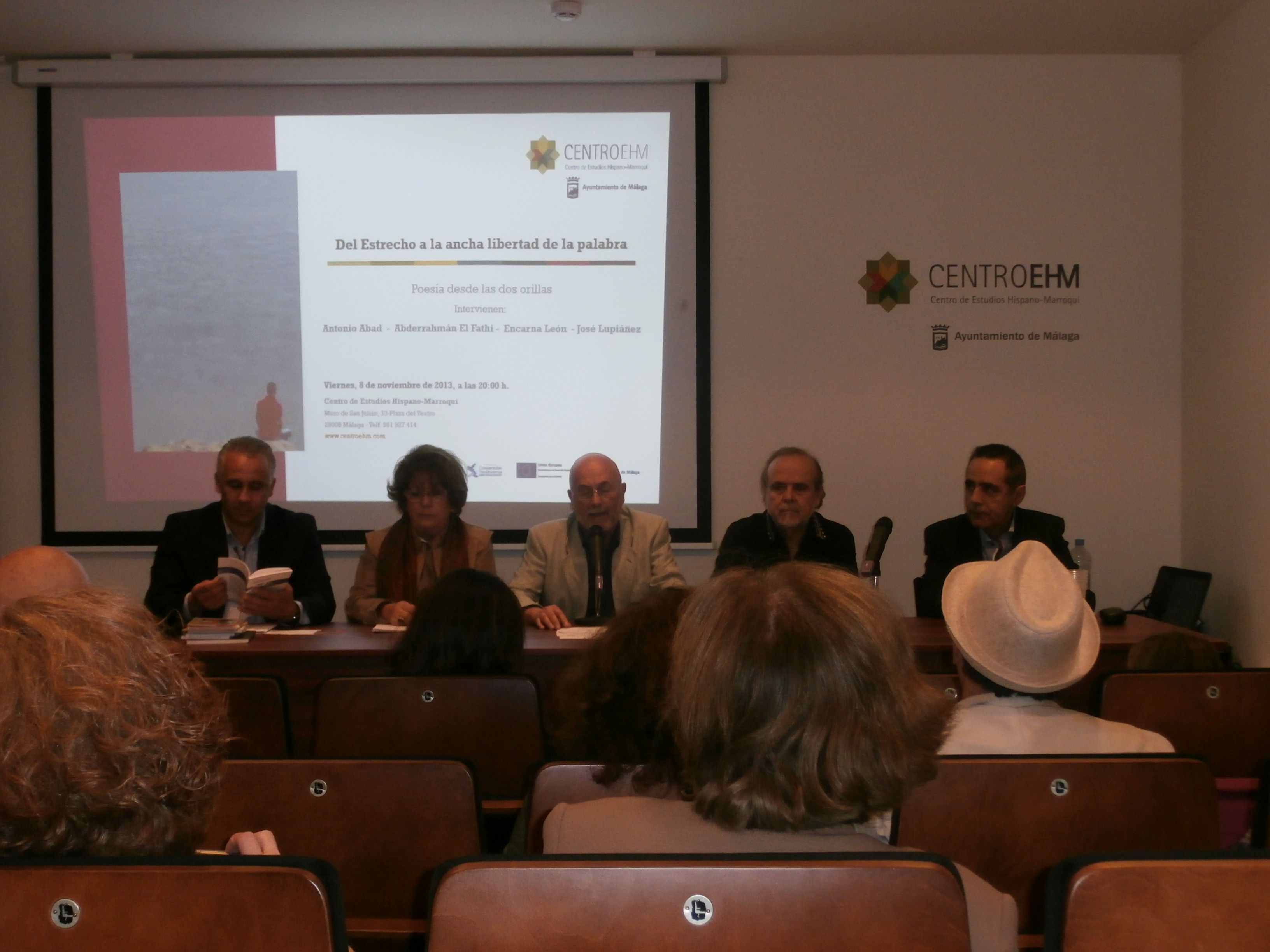 El pasado 8 de noviembre, asistí en el Centro de Estudios Hispano-Marroquí de Málaga, al acto poético titulado <Del Estrecho a la ancha libertad de la palabra>, en la que intervenían cuatro escritores y poetas: Encarna León, Antonio Abad, José Lupiáñez y mi amigo el profesor Abderrahman El Fathi. Inmejorable ocasión para saludarlo, y disfrutar de su agitado y pasional verbo.