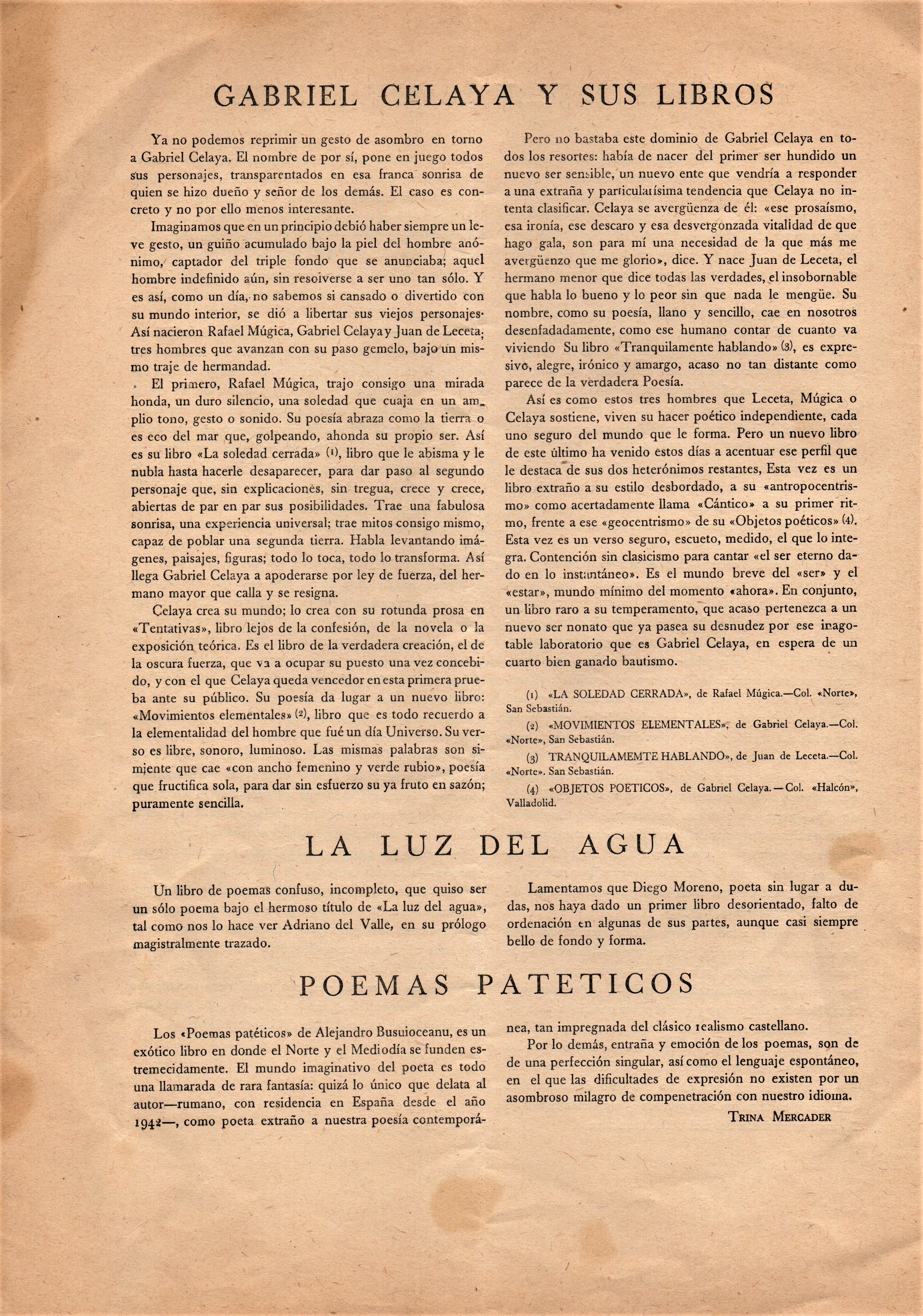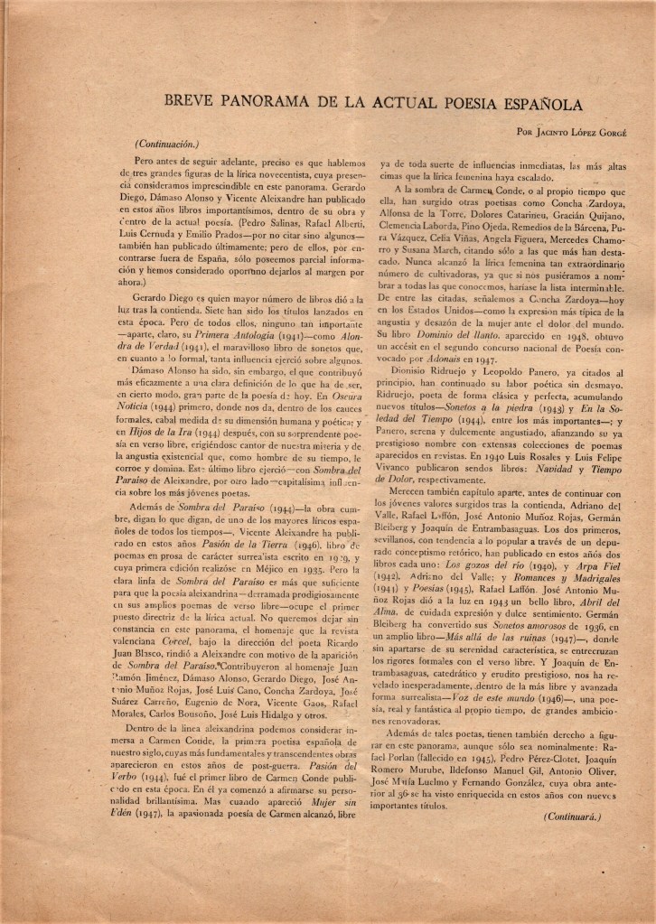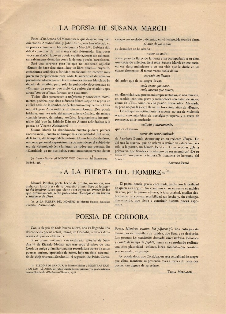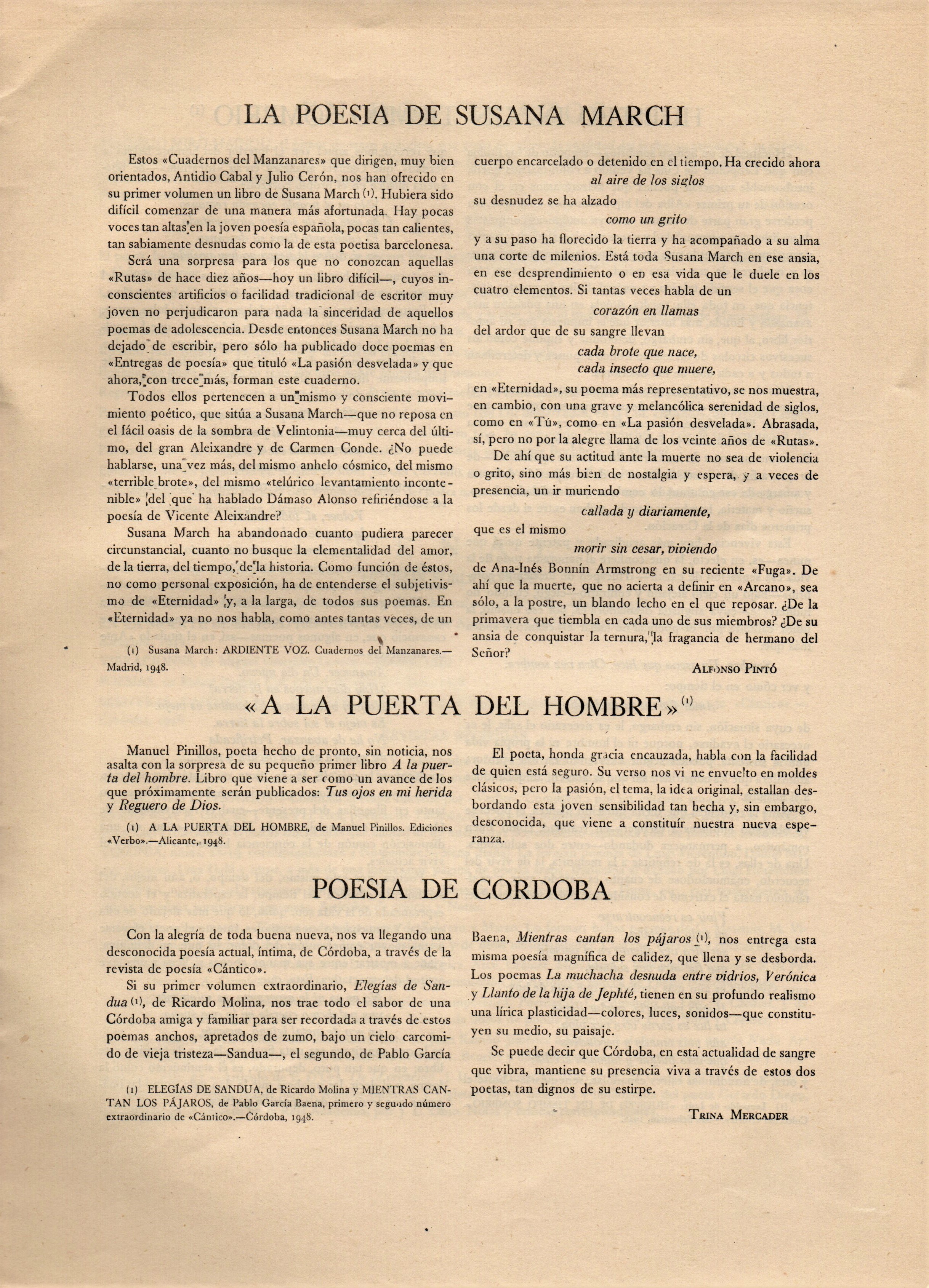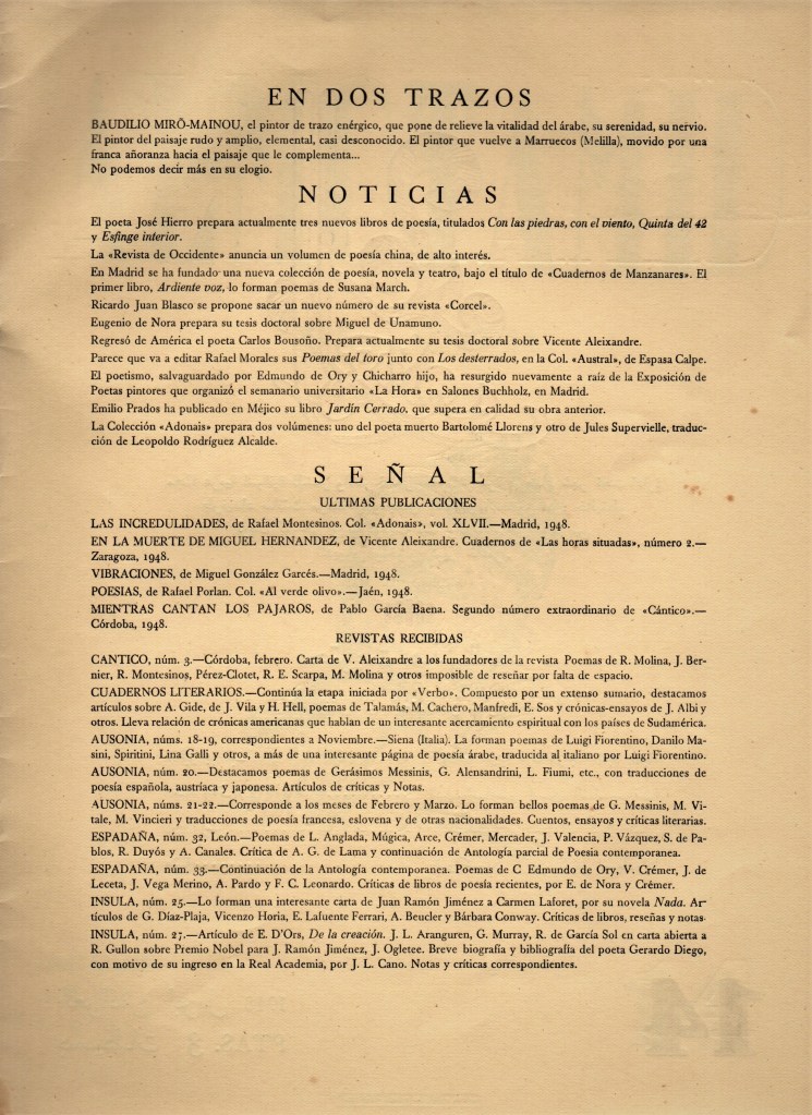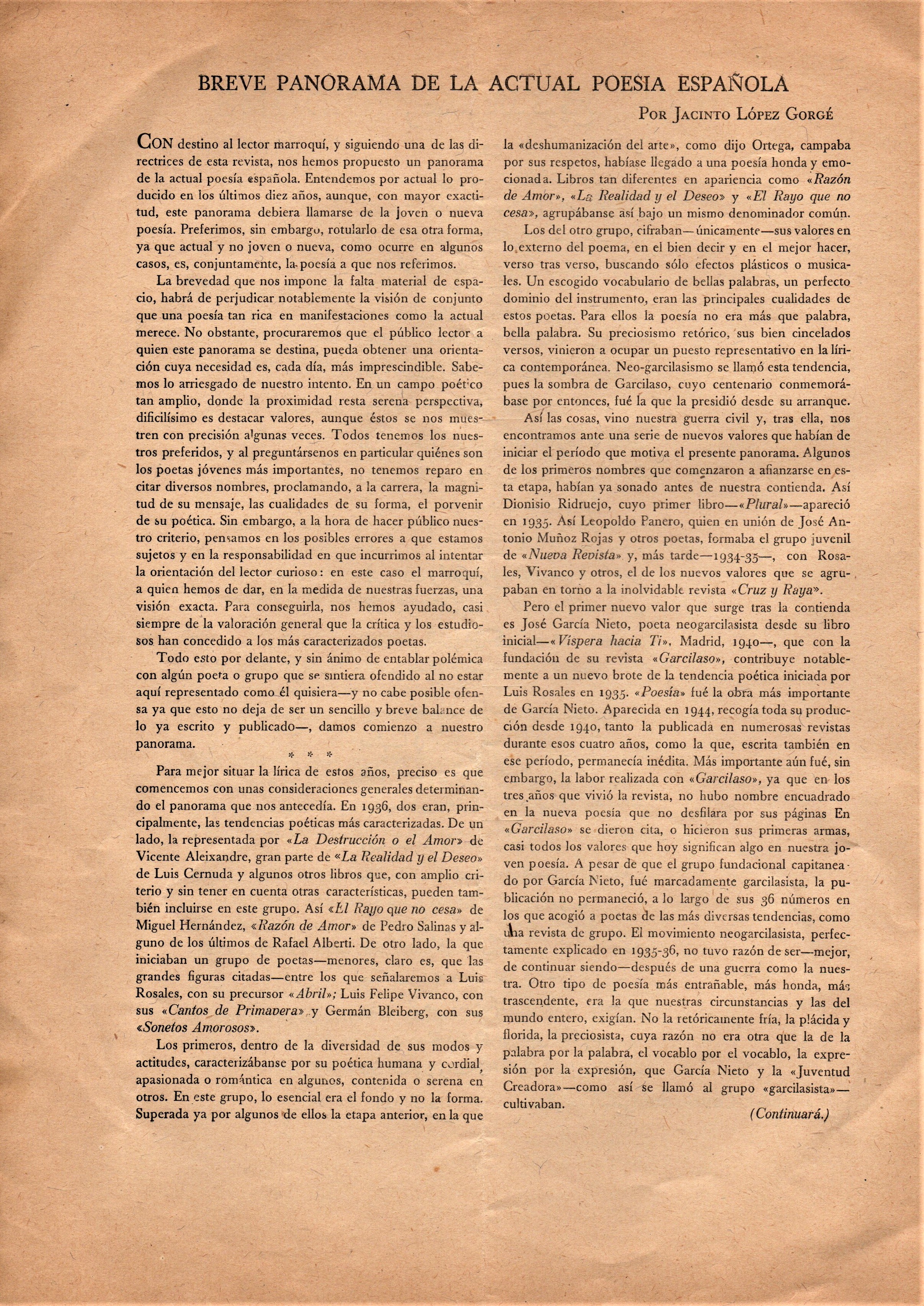 En este número participan autores como Carmen Conde, Juan Alcaide Sánchez, Mario López, Jacinto López Gorgé, Ignacio Rubio Just, Guillermo Ferrán, Francisco Sitja Príncipe, Fernando de la Granja, Fadua Tukan, Carmen Martín de la Escalera, Rafael Azuar, Julián Andúgar, Manuel Faura Soriano, Eladio Sos, Miguel Fernández y Trina Mercader.