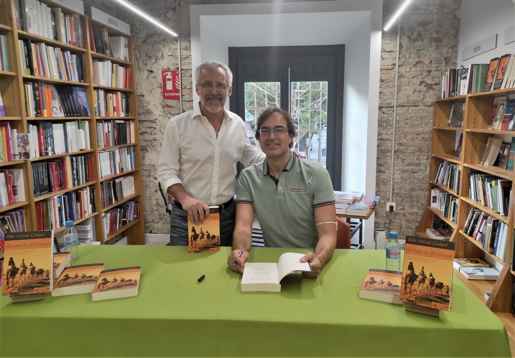 Mi novela Sombras en sepia, posando con El latido de Al-Magreb, de Pablo Martín Carbajal, y junto a No sé quién eres, de Miguel Torres López de Uralde.