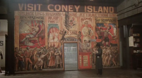El fumadero de opio, un decorado que se graba en la retina del espectador, en el que se refugia Noodles (De Niro) para olvidar y evadirse de su propia vida, fue construido en los estudios Cinecittá, en Roma, y las sombras chinescas que se proyectan en su interior fueron manejados por marionetistas indonesios y holandeses, mientras que el público que asiste a la representación está formado por chinos que residían en Roma. Es ahí donde se halla uno de los motores de la narración de la película, donde el personaje de Robert de Niro recuerda lo sucedido… La película se preña de una nostalgia que lo convierte en un film de gángster diferente. Cuando Noodles (De Niro) se marcha, cruzando la puerta de la estación del tren, y unos segundos más tarde regresa por la misma puerta ya envejecido con las notas de “Yesterday” de los Beatles es un ejemplo de ese aire melancólico y fatalista.