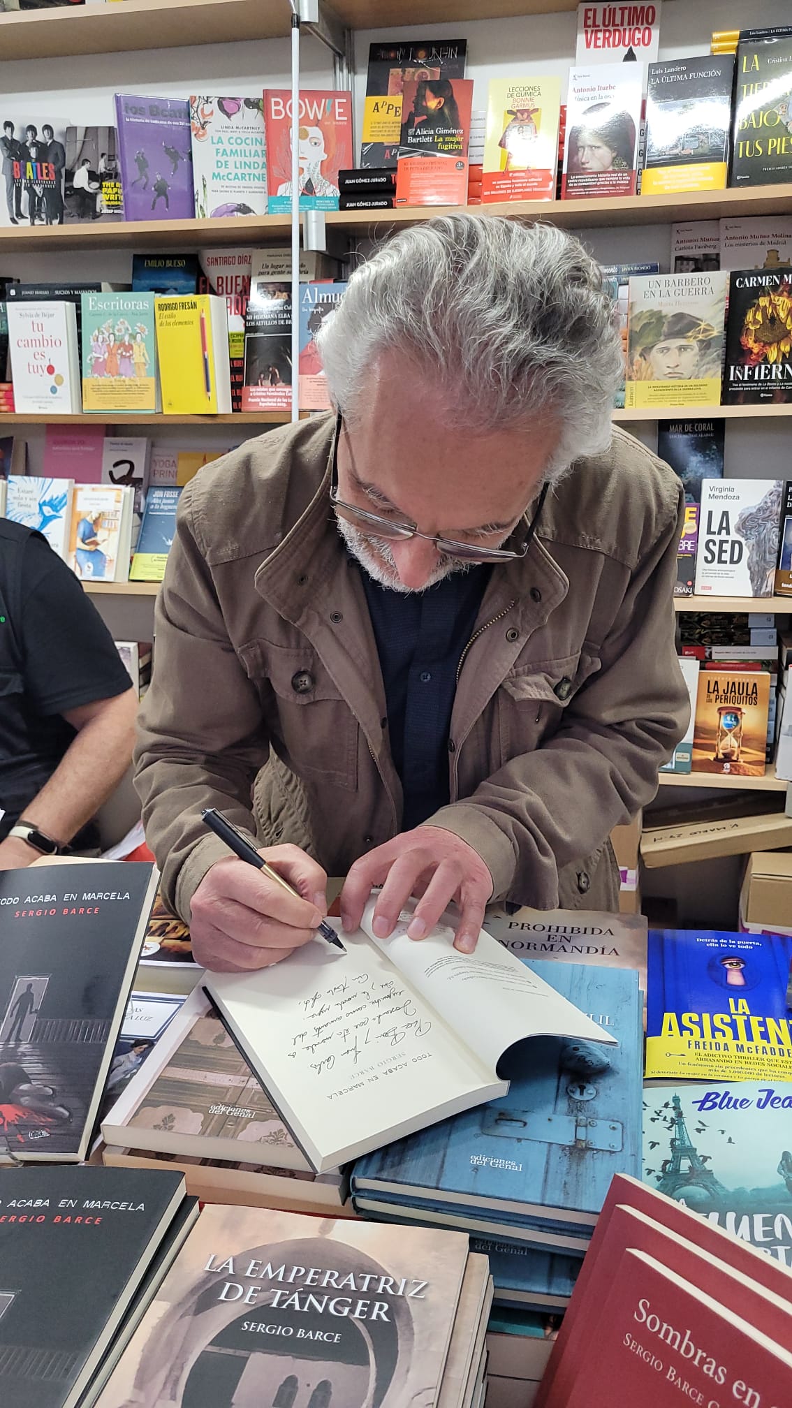 y posterior firma en la Caseta de Librería BiblioCafé