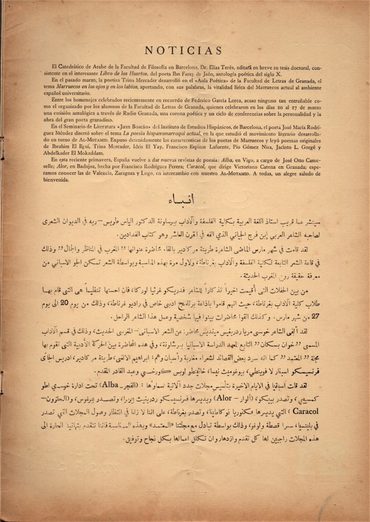En este número, participan, junto a Trina Mercader, los autores Carmen Conde, Albert Adib, Dora Bacaicoa, Ricard Permanyer, Alfonso Canales, Amina Loh, Ahmed Bakkali, Manuel García Viño, Pedro Bargueño, Francisco Salgueiro y Pío Gómez Nisa. Y en árabe: Amina Loh, Nasib Sarguini y Mahdi Al-Lal Sarioh.