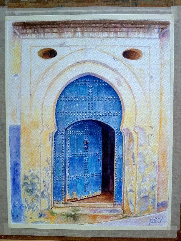 Calles y puertas de la Medina, solitarias, donde el eco de las pisadas se pierde entre las luces que caen en perpendicular, puertas entreabiertas, invitando a entrar, quizá sólo a asomar la cabeza con pulcritud. Hay en sus trazos un aroma a silencio, nadie perturba el paisaje, un Larache adormecido, quizá una metáfora del Larache que es hoy. Silencio, pues, en medio de la soledad.