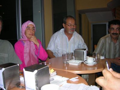 Y en esta otra, también celebramos un encuentro lleno de buena camaradería y calidez. Creo reconocer en la foto a los que nos reunimos en Larache creo que en 2004: en primer término Mohamed Akalay, y con él Abderrahman Lanjeri, Bouissef Rekab, Mohamed Sibari, el cónsul José Ramón Remacha, Mohamed Laabi, Mustapha el Bouhtoury, Ramón López Tuñas, Miguel Ángel, Gonzalo, Sergio Barce, Maria Luisa Diéguez y Mohamed Lahchiri.