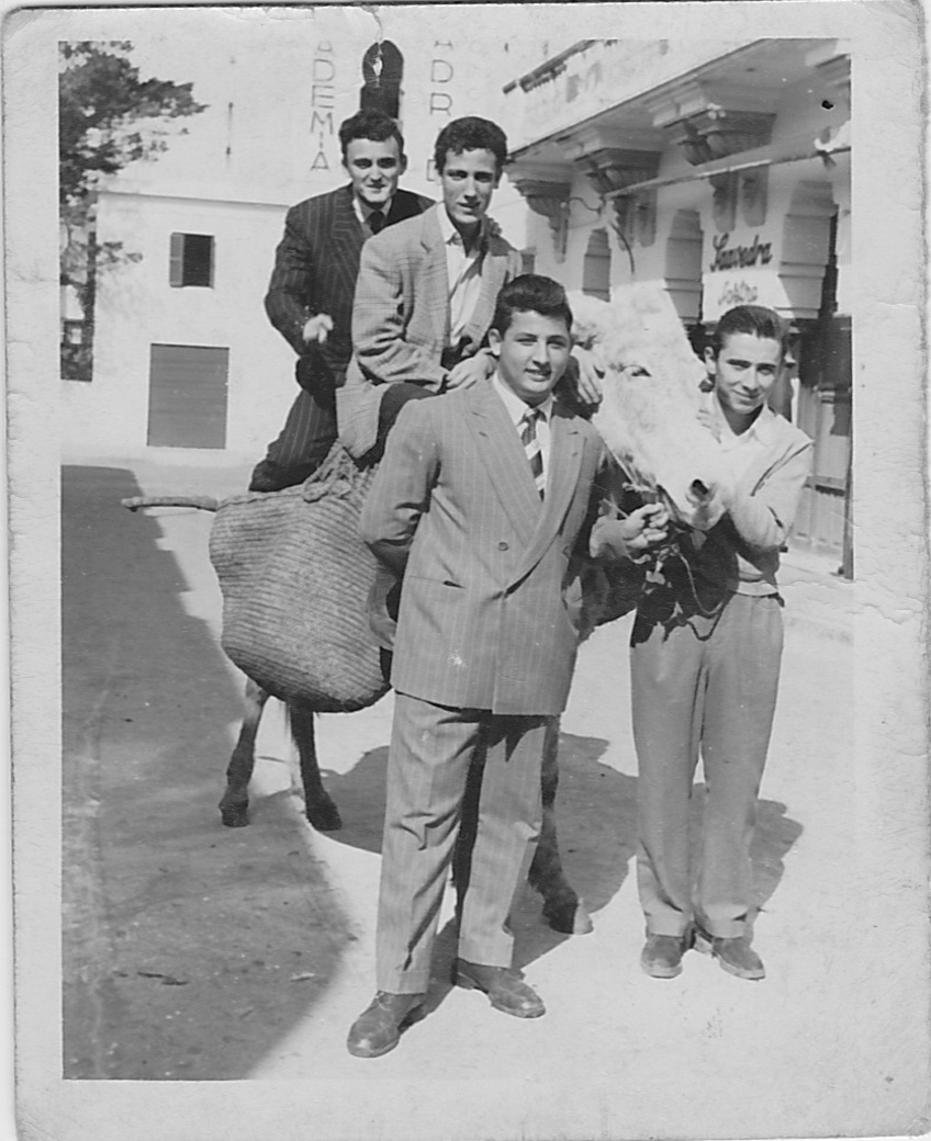 También de hace ya bastantes años, la siguiente es una simpática foto de otro grupo de amigos larachenses: encima del caballo, Alberto Fuentes y Antonio Salles, y  delante del animal, Pepe García Gálvez y Diego Ramos “Guege”.
