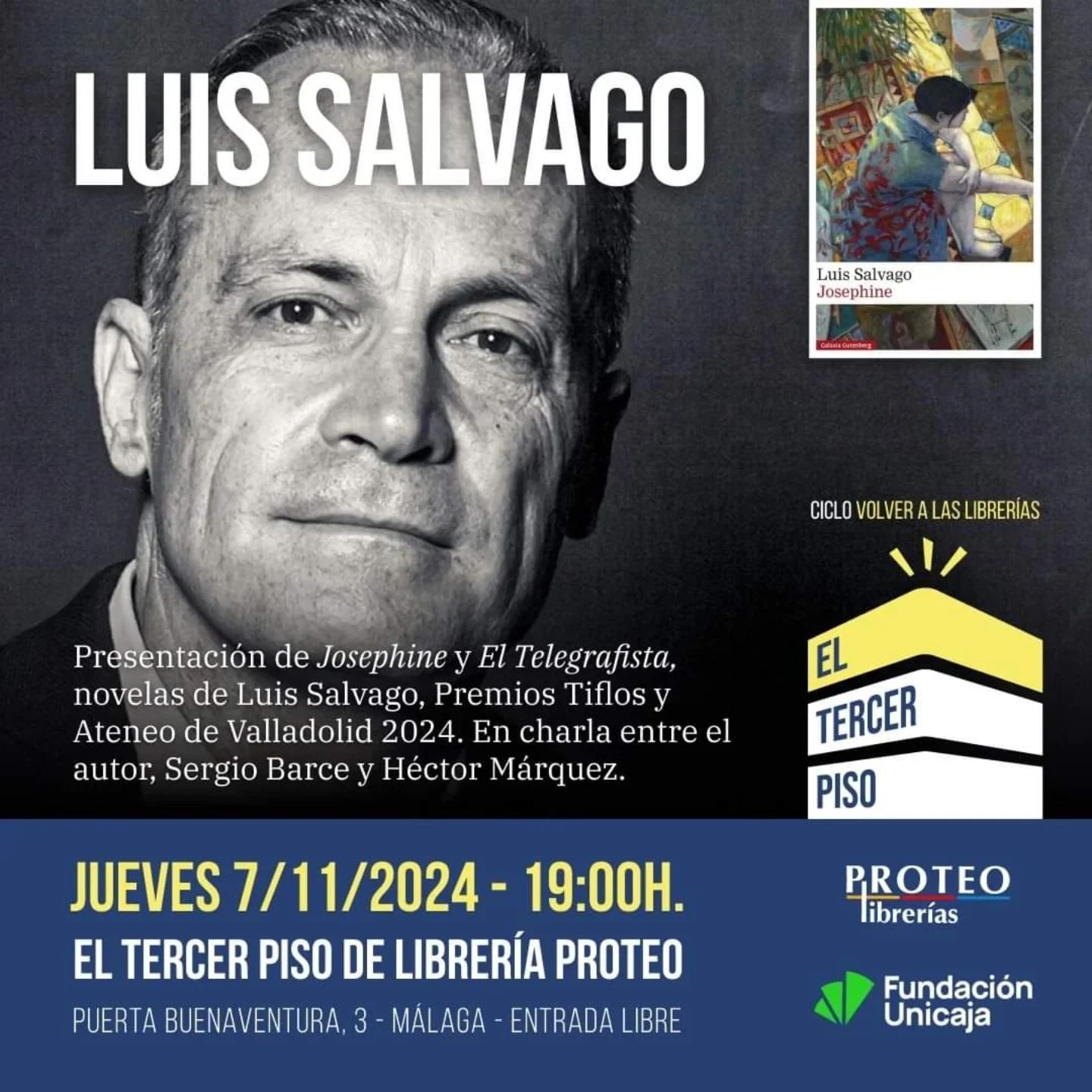 Junto al maestro Héctor Márquez, este jueves, 7 de noviembre, a las 19.00 horas, presentaremos las recientes novelas de Luis Salvago: «Josephine» y «El telegrafista». En el Tercer Piso, de Librería Proteo, en Málaga.