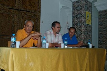 Mohammen Larbi Bouharrate, Mohamed Laabi & Ahmed Demnati, tres autores larachenses durante la presentación del libro