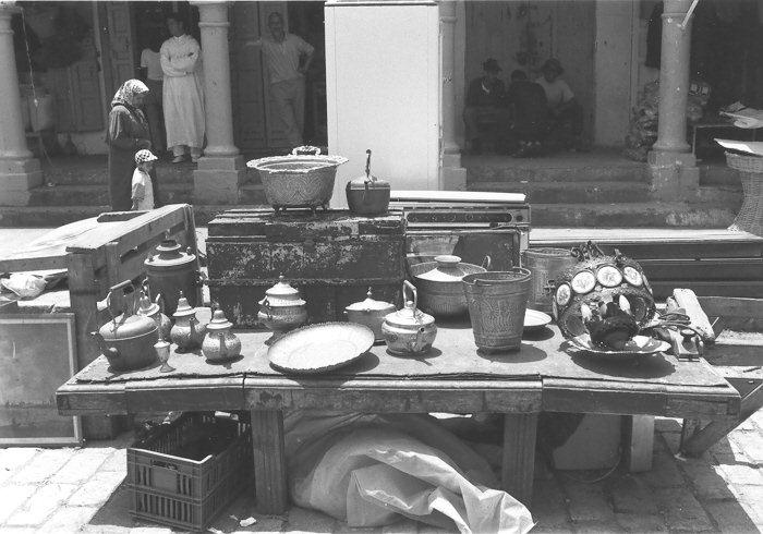 Es difícil imaginar la Casa de España de Larache sin Pelé, su amabilidad, su sonrisa. Ahí se le escapa junto a Javi, se les nota cercanos. También es difícil no pensar en la misma Casa de España sin Curro, que se marchó a Málaga no hace demasiado. Hay lugares que están indisolublemente unidas a ciertos personajes, eso las hace quizá más humanas, más nuestras. También me gusta esa imagen del mercado que ofrece lo que se puede  vender y que la cámara de Javi parece envolver en un halo de misterio, de lejanía, de sueño brumoso, como si fuese la mercancía de un legendario comerciante llegado a la calle Real desde Tombuctú. Es la magia del blanco y negro, de su blanco y negro…