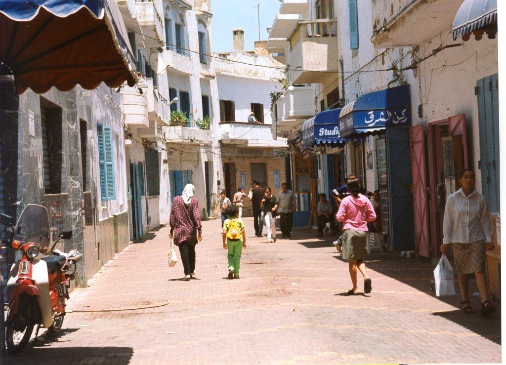 Ya estamos entrando por la antigua carretera, el cartel nos da la bienvenida, y dejamos atrás Lixus y las salinas. El primer nudo en la garganta se siente cuando vemos el perfil de la ciudad desde una curva, dibujada sobre el mar, como esperándonos…