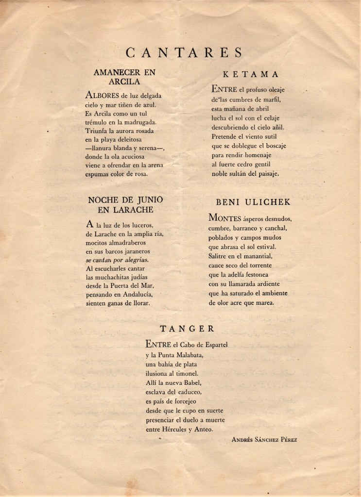 He conseguido varios de los números originales de la mítica revista poética Al-Motamid, que se publicó en Larache y en Tetuán. En la medida que pueda, os iré colgando cada uno de los números, completos, que he logrado rescatar. Hoy lo hago con el ejemplar REVISTA AL MOTAMID nº 11. Este número se editó en Larache en enero de 1948, y costaba 3 pesetas.