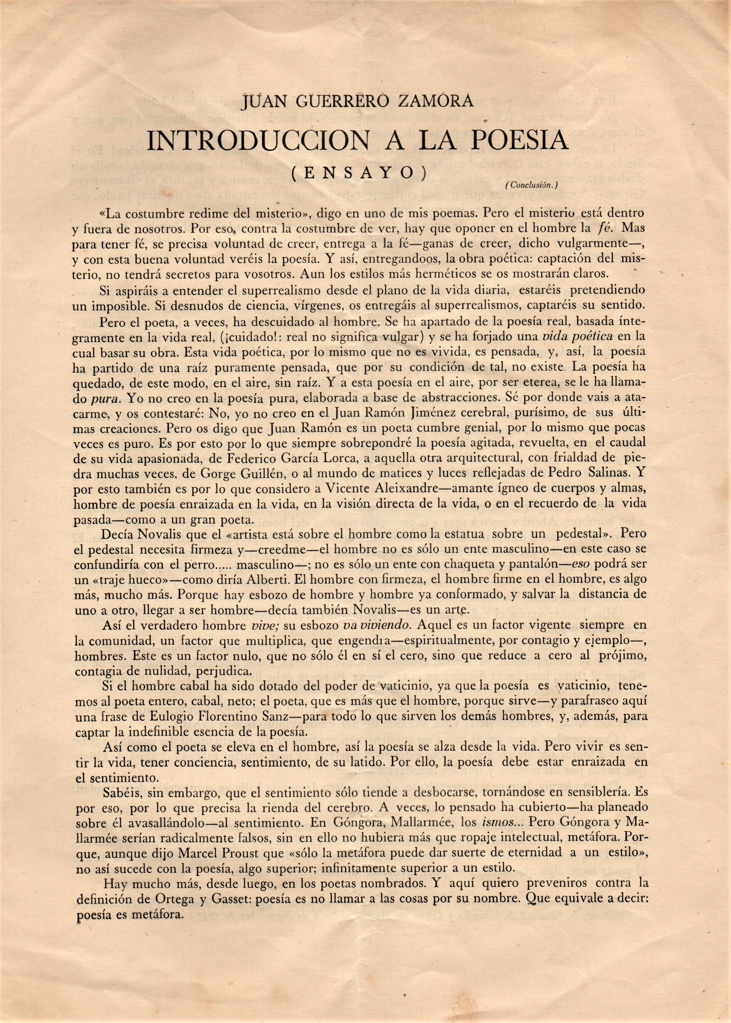 INTRODUCCIÓN A LA POESÍA de Juan Guerrero Zamora