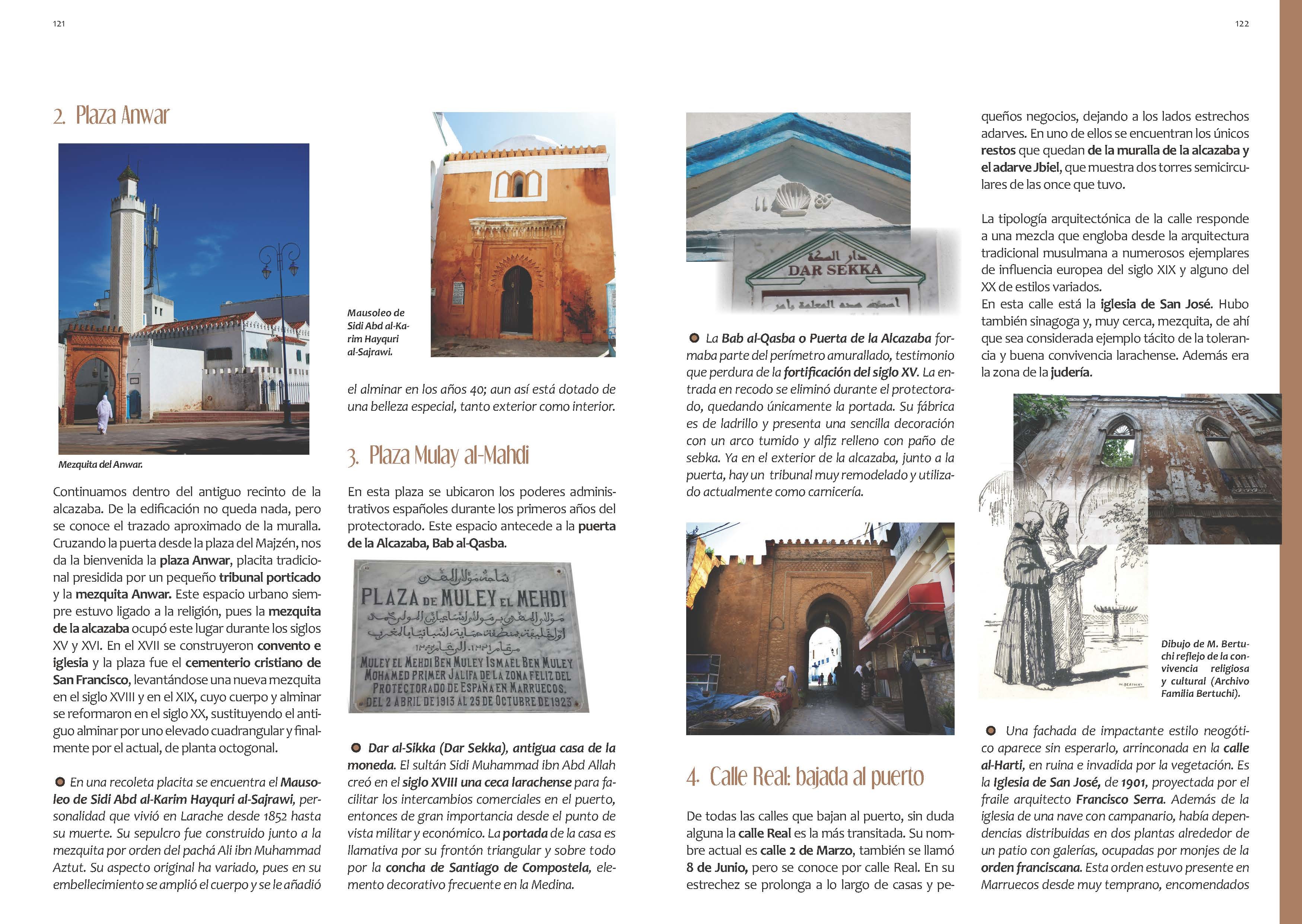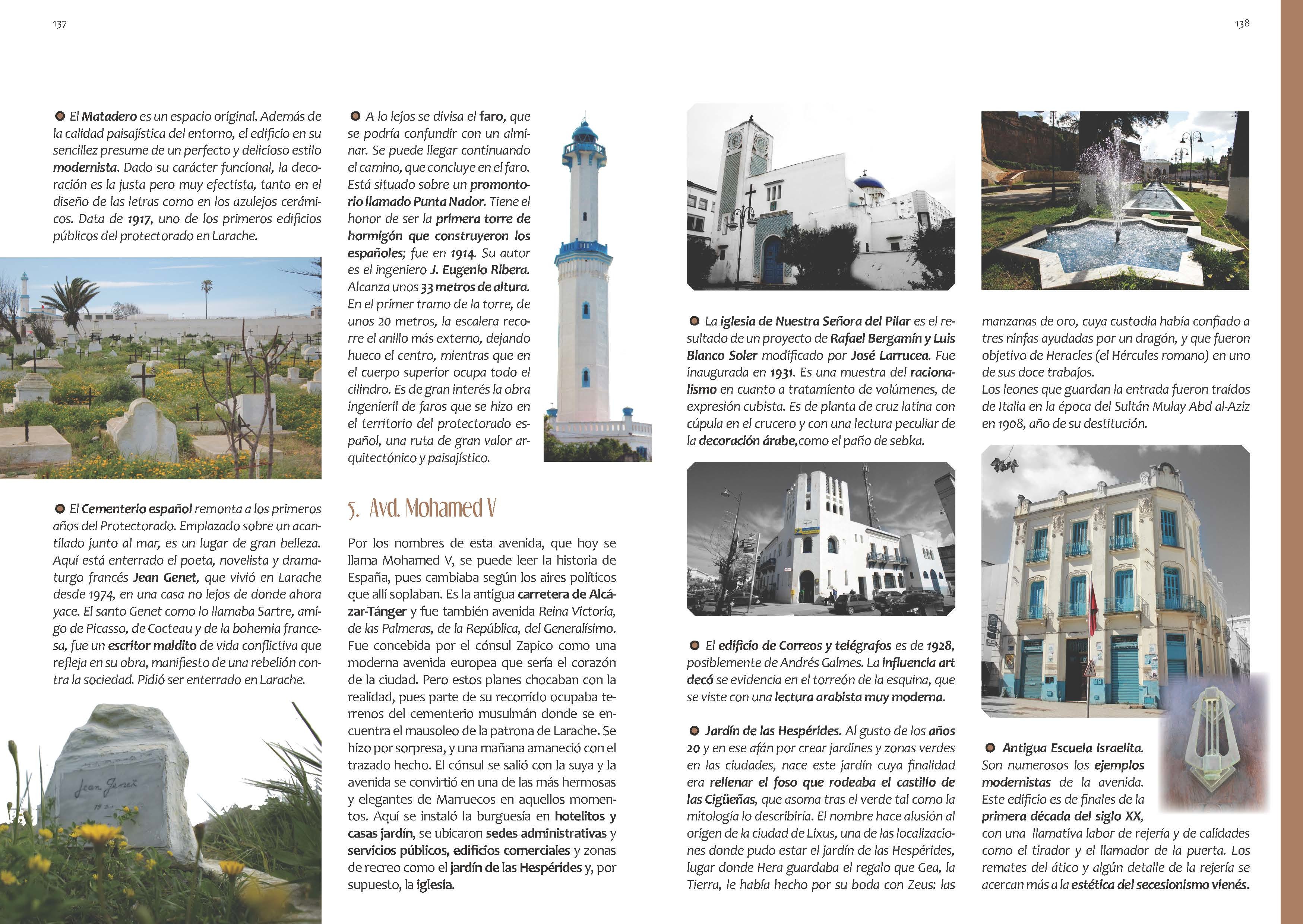 «Maquillada por la pátina atlántica del clima y de la luz, Larache es la cal manchada de azules marineros y el cálido color de la bienvenida que se reparte por sus puertas: el color de la tierra, el del ladrillo y la piedra, que invitan a cruzar dimensiones mitológicas, históricas y reales.
