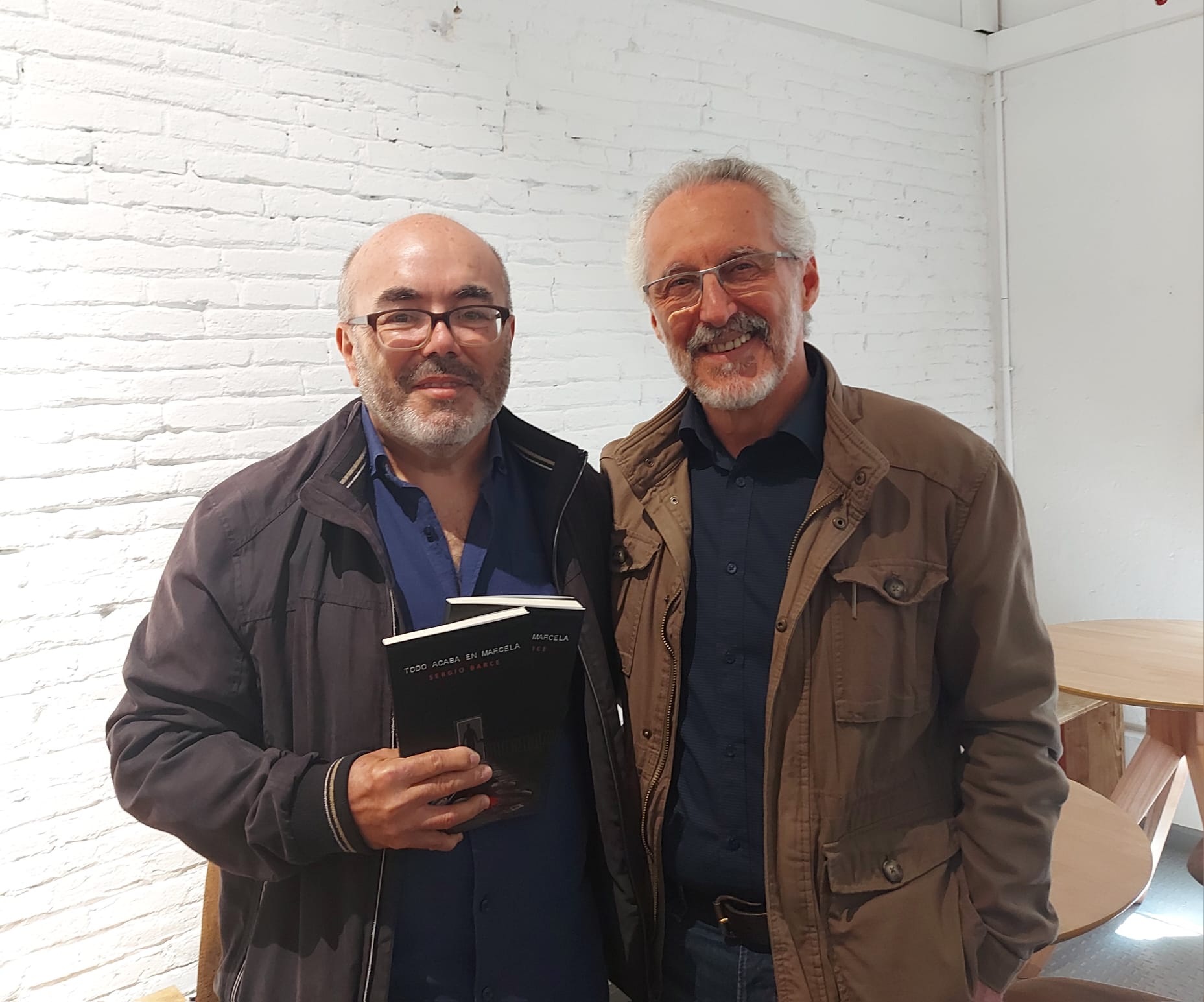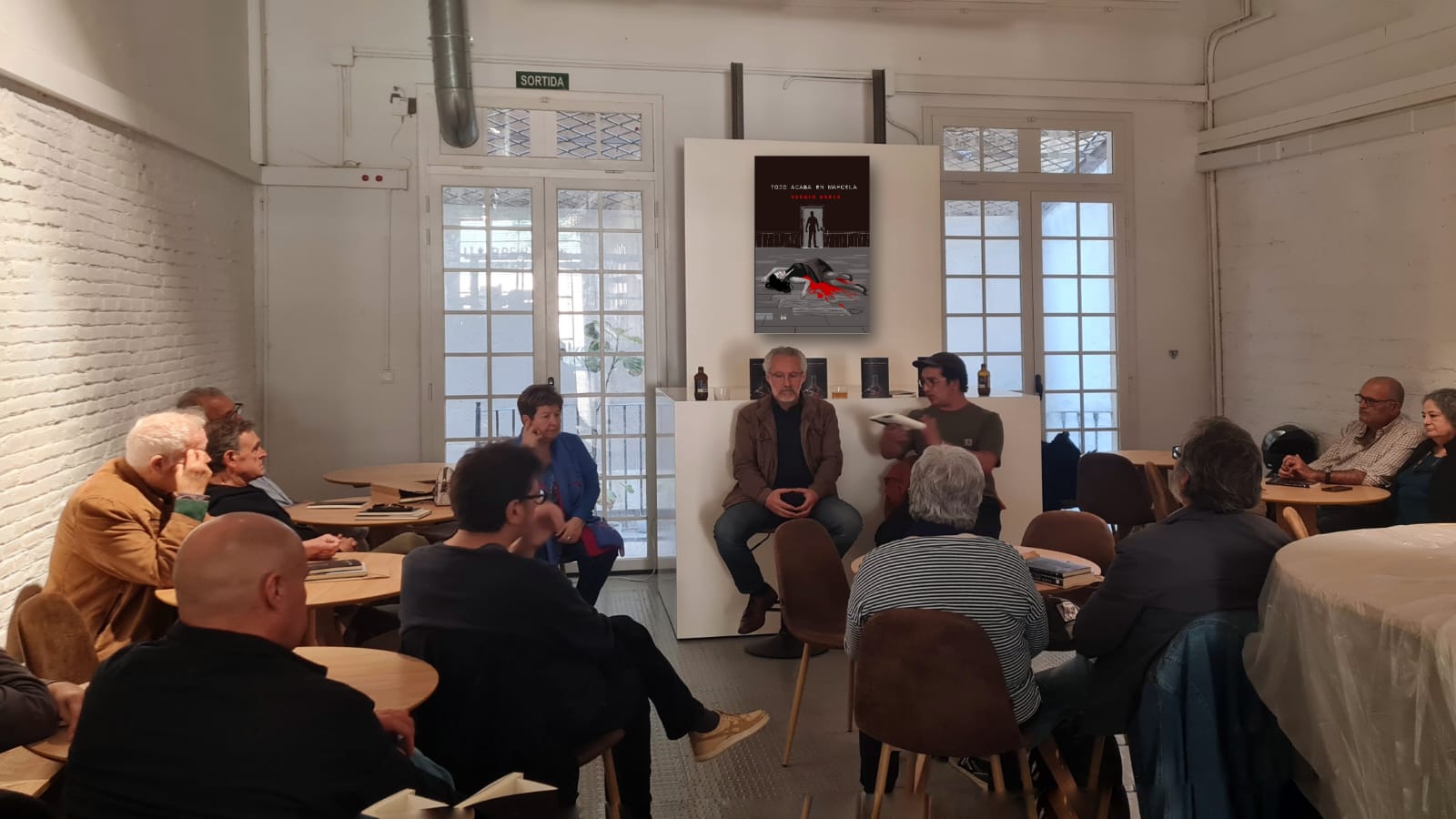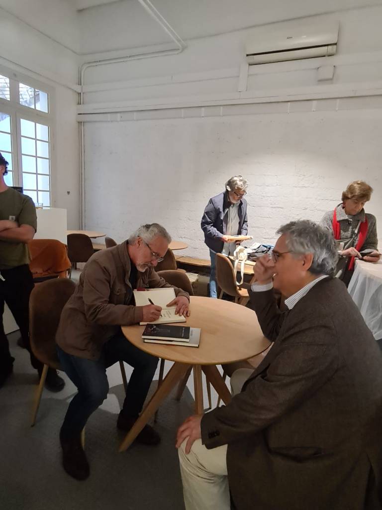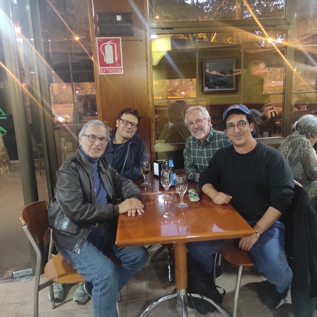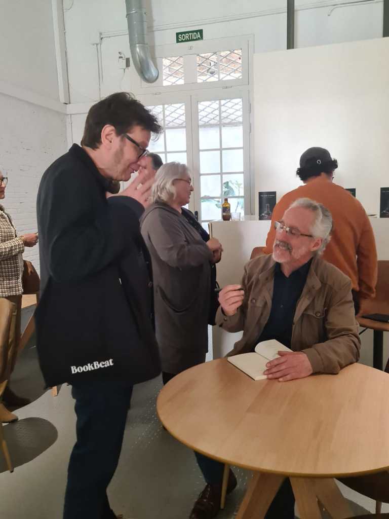 Al día siguiente, domingo, invitado por Olga Martínez, de la editorial Candaya, estuve firmando en el <Sant Jordi – Trobada d´editorials independets Canada + Candaya>, en Poble Sec, donde coincidí con Jose Garriga Vela, autor de referencia de Candaya y amigo fraternal, con el que luego, días después, he coincidido también firmando en la Feria del libro de Málaga. Luego, estupendos momentos de nuevo con Youssef y Juan Pablo Caja.