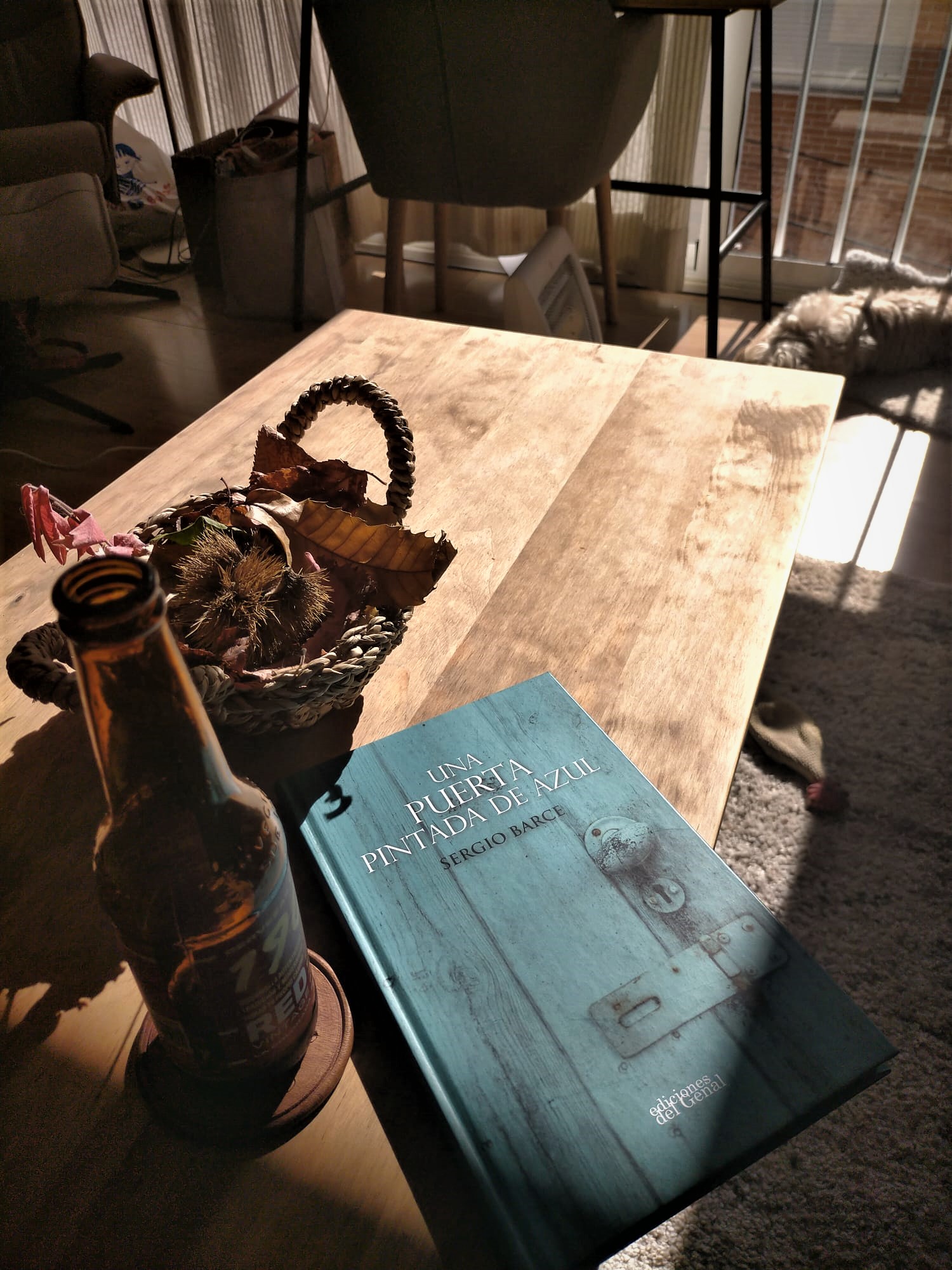 Buena fotografía la que me envía mi querido amigo el escritor Mario Castillo del Pino: el rincón donde relee mi último libro Una puerta pintada de azul. Me escribe bajo esa imagen: