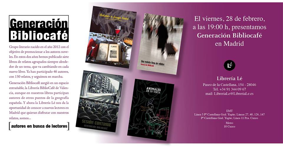 Este viernes, 28 de Febrero, se presenta en Madrid la Generación Bibliocafé, y también la obra de los escritores que formamos la Generación Bibliocafé.