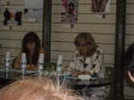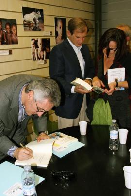 Larache y larachenses – obsérvese el detalle – mientras firmo un ejemplar de «Una sirena se ahogó en Larache», Luis Cazorle enseña uno de la suya «La ciudad del Lucus», y Gabriela Grech la observa mientras sostiene un ejemplar de mi obra