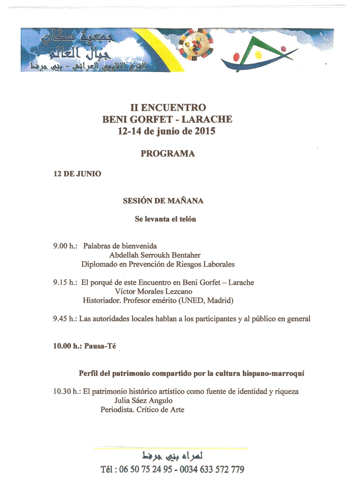 Abderrahman Lanjeri me sonreía sentado junto a sus tías, y otros larachenses como él vibraban literalmente escuchando a Luis. Allí estaban Cristóbal Ramirez, Paquita Fajardo, Hassan Zouber, Manuela Povedano, Ilias Lahyani, y lo ya mencionados Mohamed Chouirdi, Gabriela Grech y Angeles Ramírez. Una excelente representación.