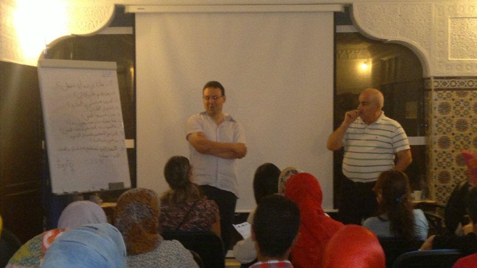 Mounir Kasmi junto a Carlos Amselem en el Curso de Microempresas que se impartió en Larache organizado por Xenia y Larache en el Mundo