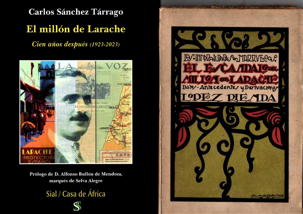 Tengo en mi mesa, junto a otros libros, dos de los títulos pendientes de leer en los próximos días. Se tratan de la edición de 1922 de El escándalo del millón de Larache, escrito por Rafael López Rienda, publicada por la Imprenta Artística Sáez Hermanos, de Madrid, y la reciente obra del historiador Carlos Sánchez Tárrago, titulado El millón de Larache: Cien años después (1923-2023), que ha editado Sial/Casa de África. El primero de los títulos lo leí hace años, así que se hace necesaria una relectura antes de hincarle el diente al libro de Carlos. Sin duda, será muy interesante analizar los dos puntos de vista y la información complementaria que Carlos Sánchez Tárrago aporta tras la investigación que ha efectuado sobre unos de los mayores escándalos acaecidos dentro del estamento militar africanista español.