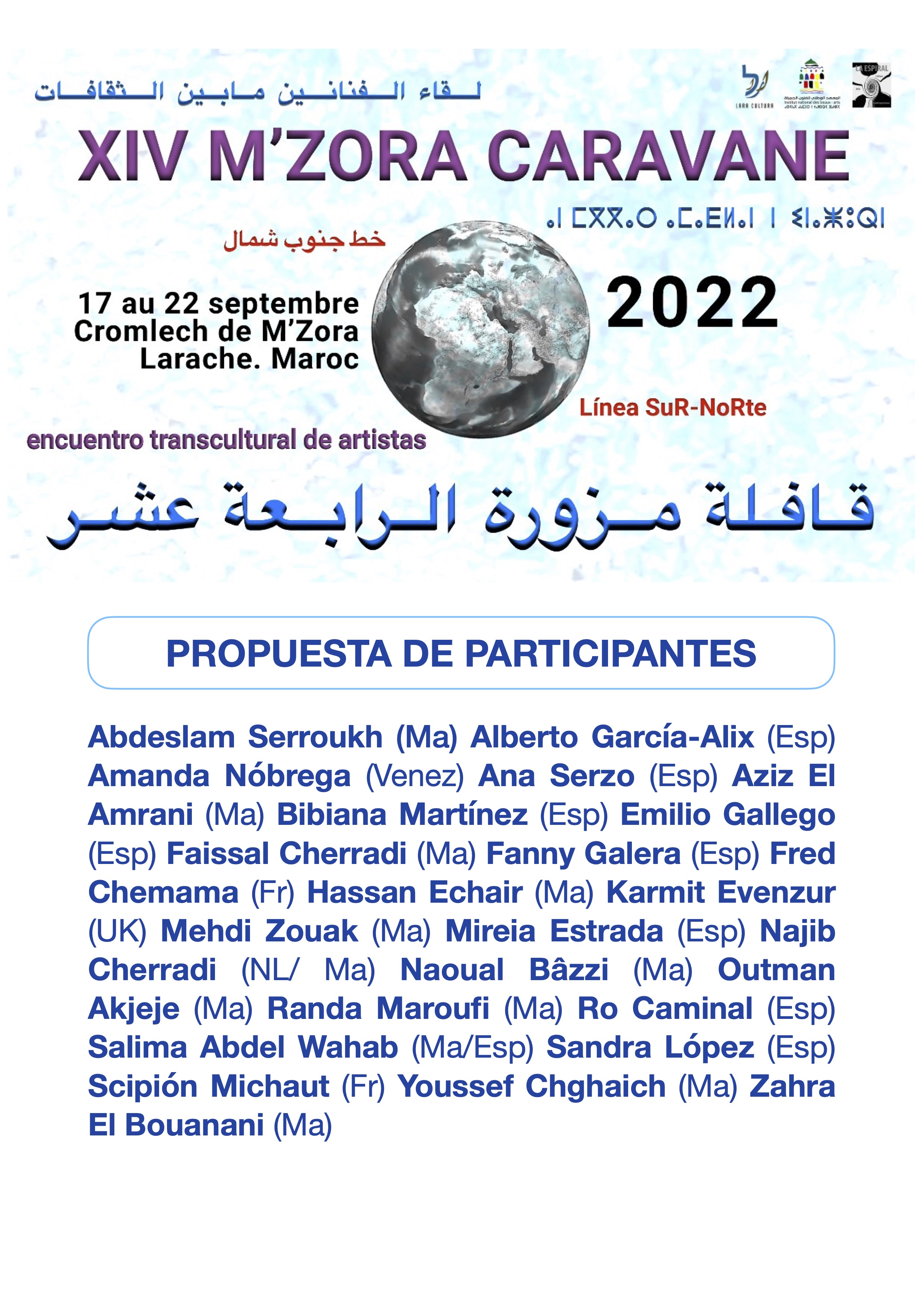 Desde el primer encuentro de un pequeño grupo de artistas en el Cromlech de M´Zora (Larache), M´ZORA CARAVANE ha ido creciendo año tras año hasta llegar a esta decimocuarta edición, en la que el número de participantes se ha incrementado exponencialmente y ha crecido en calidad y repercusión.