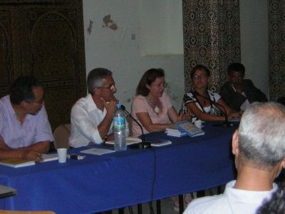 Presentación de la novela en Larache: Mohamed Laabi, Sergio Barce, Cristina Martínez, Mª Dolores López & Mohamed Al Baki